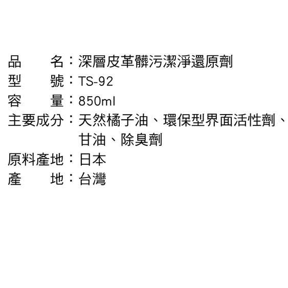 Capro車之生活 TS-92 極銳澤2代 深層皮革髒污潔淨還原劑850ml【麗車坊02024】