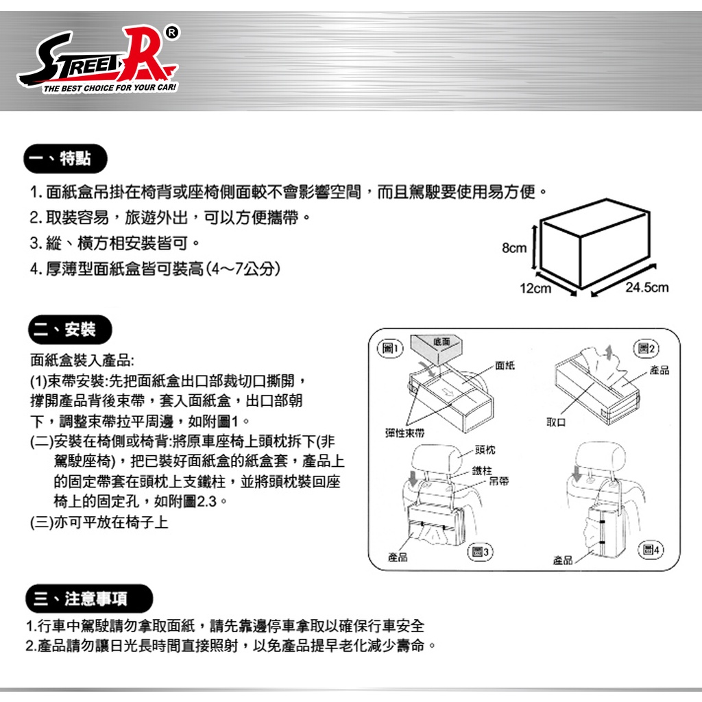 STREET-R SR-503 簡易型 吊掛 面紙套【麗車坊01159】