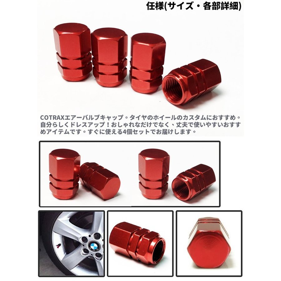 Cotrax 鋁合金 陽極六角 氣嘴蓋-紅 4入【麗車坊02316】