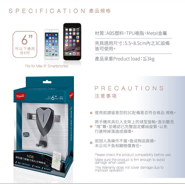 E-books N58 盾型重力聯動冷氣孔手機車架 【麗車坊02994】