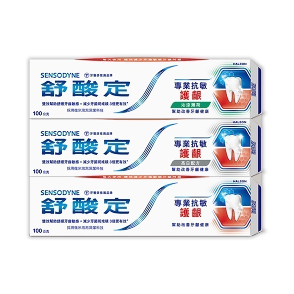 【舒酸定】進階護理 專業抗敏護齦牙膏100gX3入(亮白/原味/沁涼薄荷)