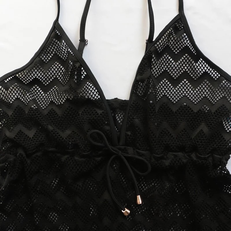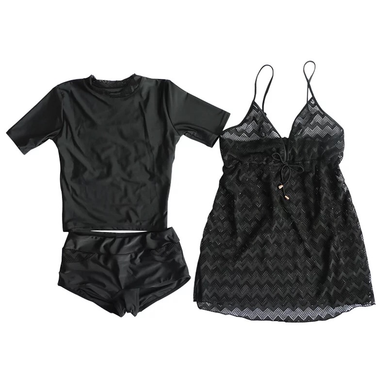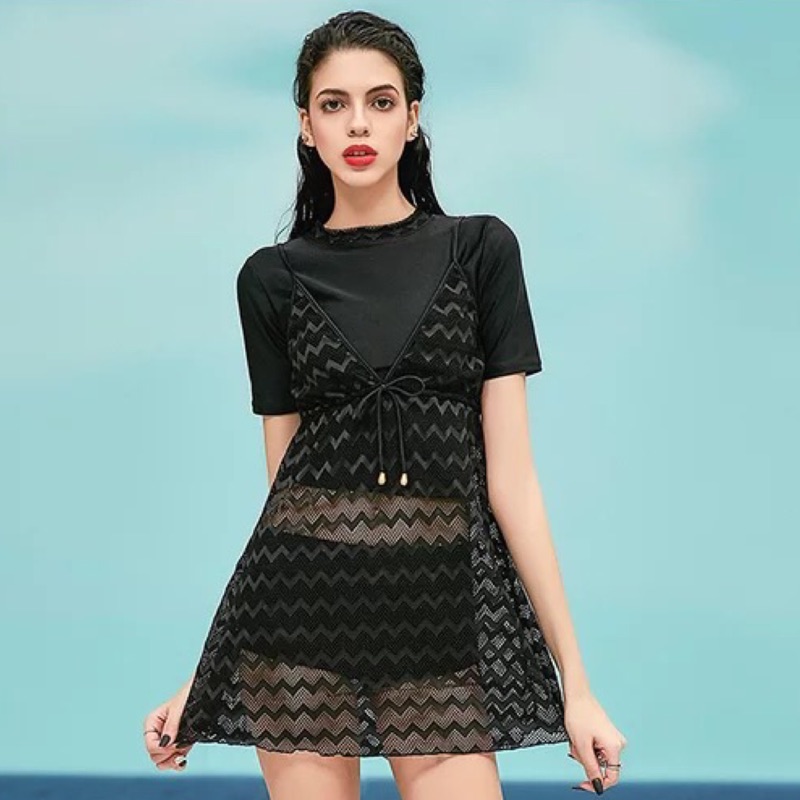 Heatwave熱浪新款性感溫泉蕾絲吊帶連體裙保守泳衣三件套女