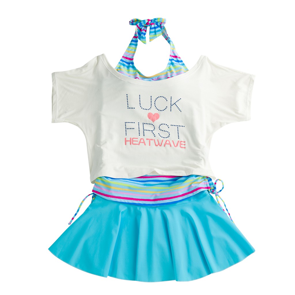 Heatwave熱浪 女款多件式泳衣 清新甜美可愛條紋四件套 兩截式游泳衣女