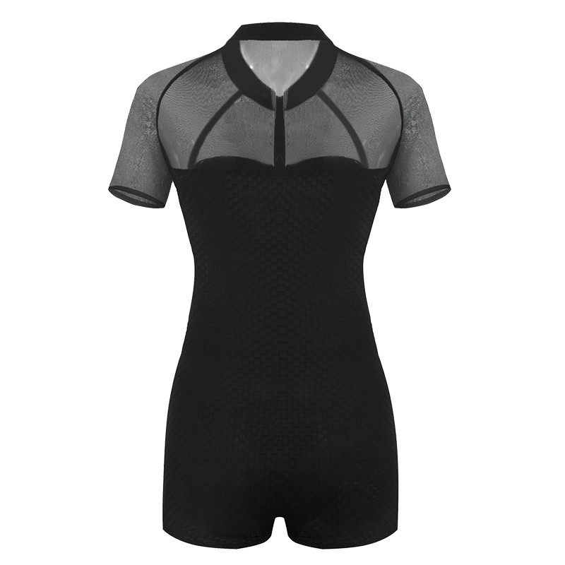 Heatwave熱浪 女款連身泳衣 純色透視性感短袖拉鏈 連身游泳衣女