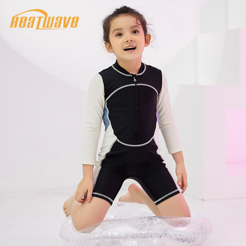 Heatwave熱浪 兒童長袖泳衣'防曬中大童連身平角比賽競速專業訓練速乾拼接泳衣