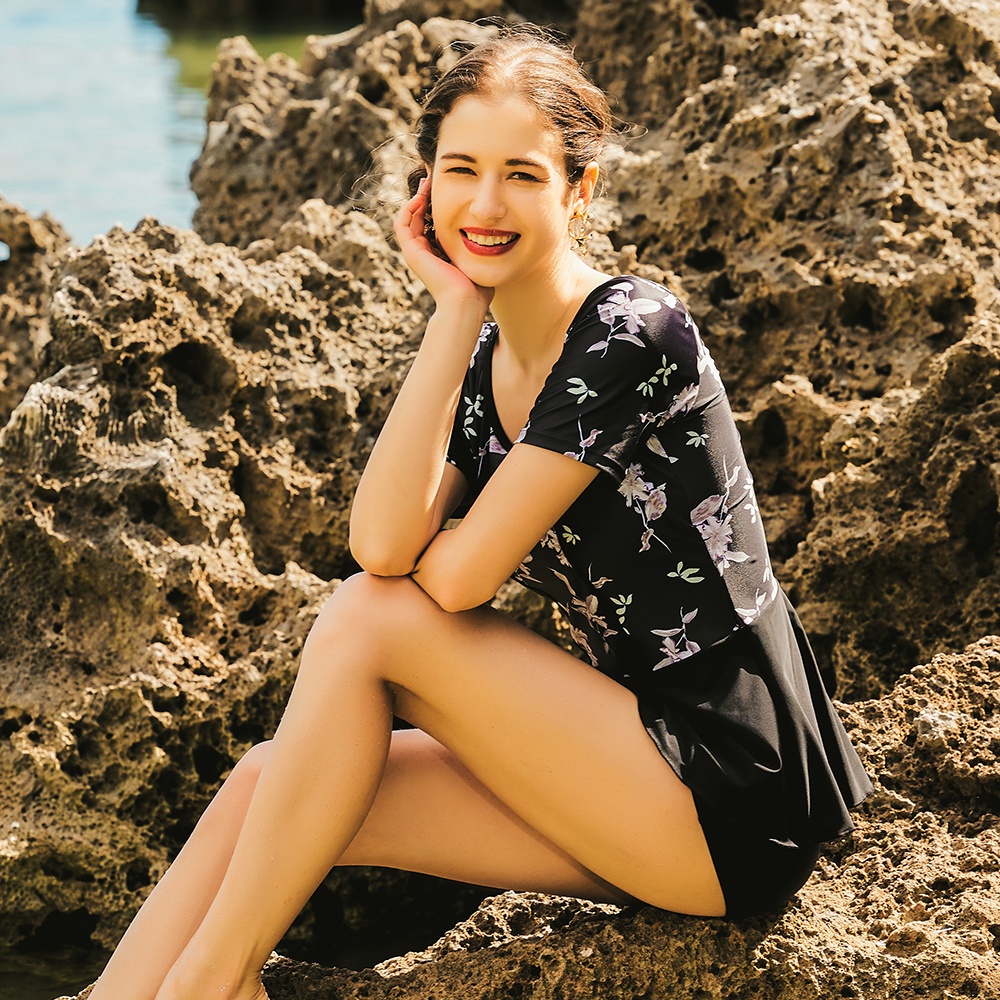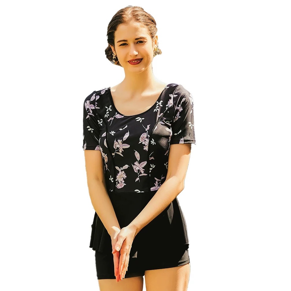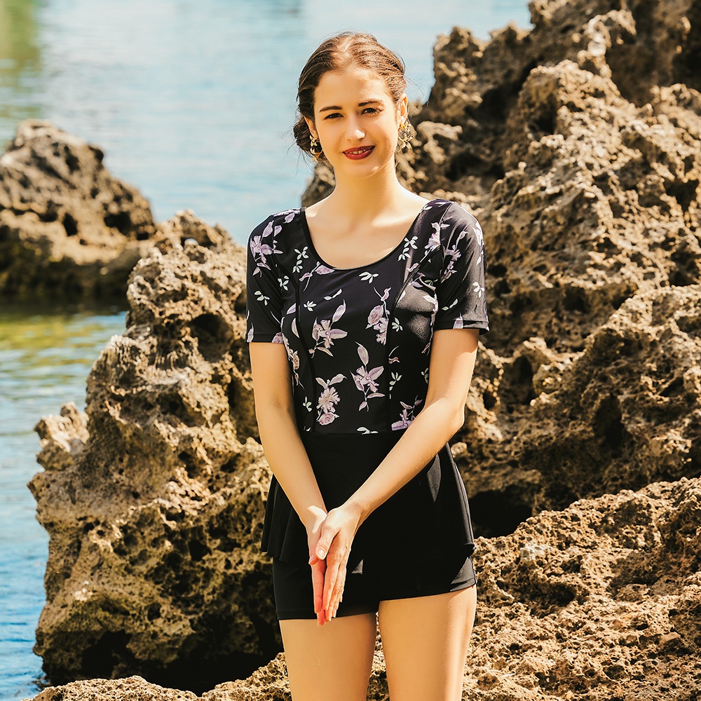 Heatwave熱浪 兩截式兩件套大碼泳衣女時尚女士游泳衣溫泉泳裝新款保守印花泳衣
