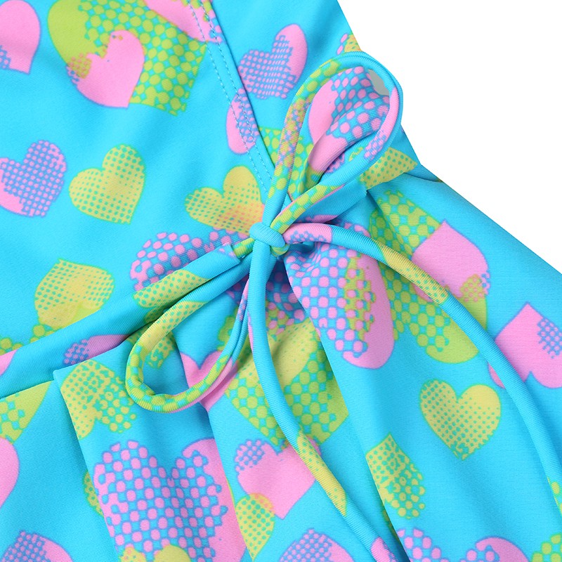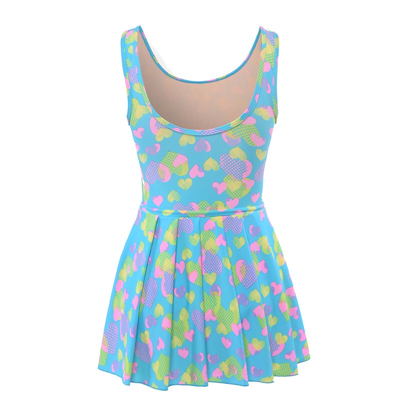 heatwave熱浪泳衣女愛心藍色連身韓國ins印花少女保守遮肚顯瘦裙式連體游泳裝