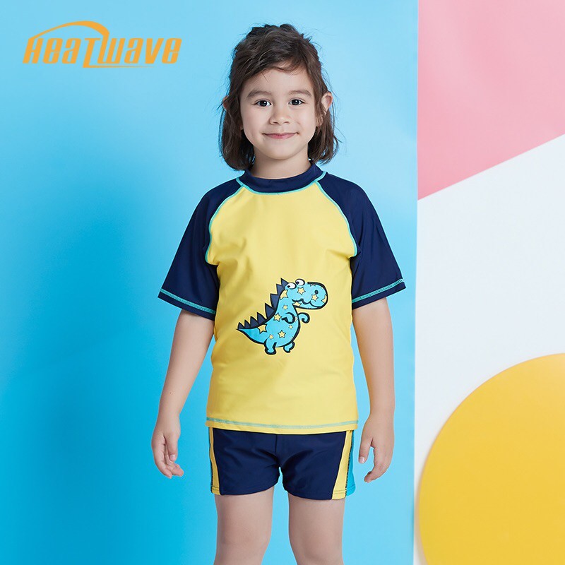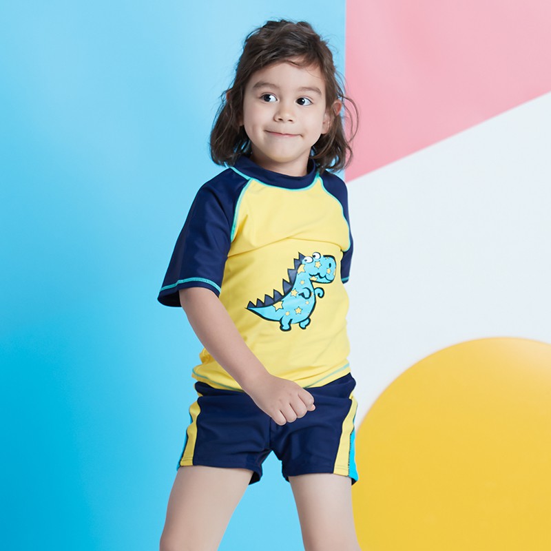 Heatwave熱浪 兒童泳衣男童中童短袖卡通恐龍分體小童可愛游泳衣
