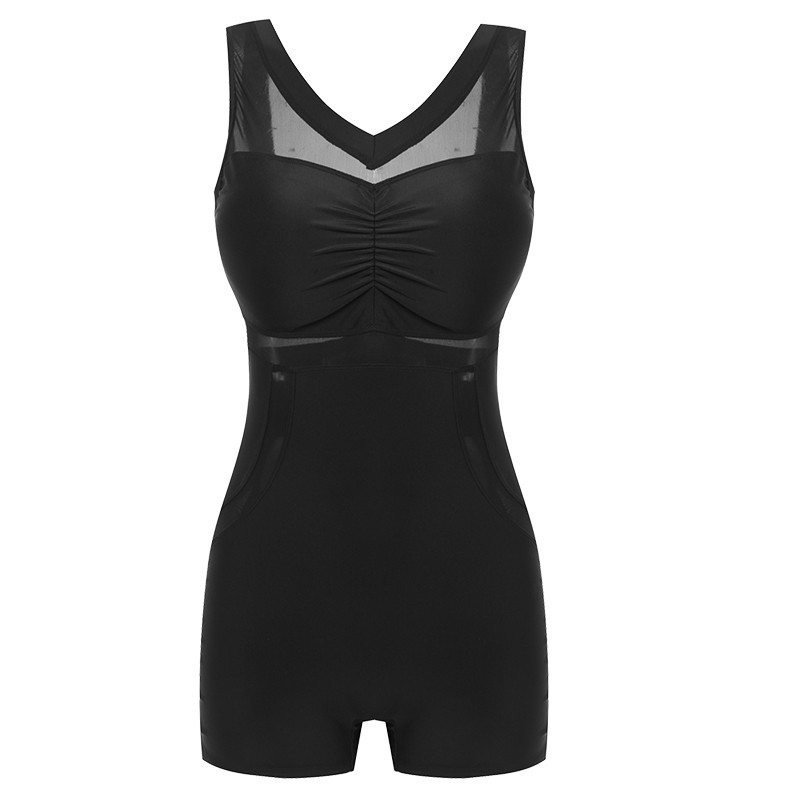 heatwave熱浪泳衣女保守小胸聚攏性感黑色大碼顯瘦遮肚運動平角連身泳裝