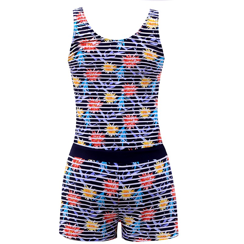 heatwave熱浪泳裝印花甜美可愛顯瘦保守系帶無袖連身平角二件套游泳衣女