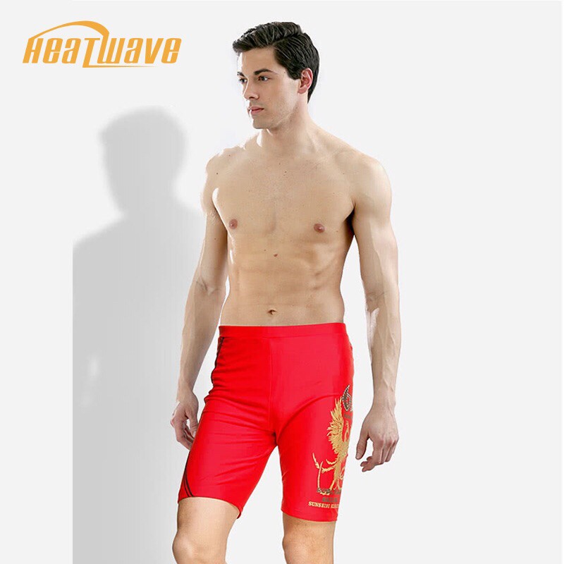 Heatwave熱浪 泳褲紅色五分男生潮流速乾專業訓練中長款男士時尚泳褲
