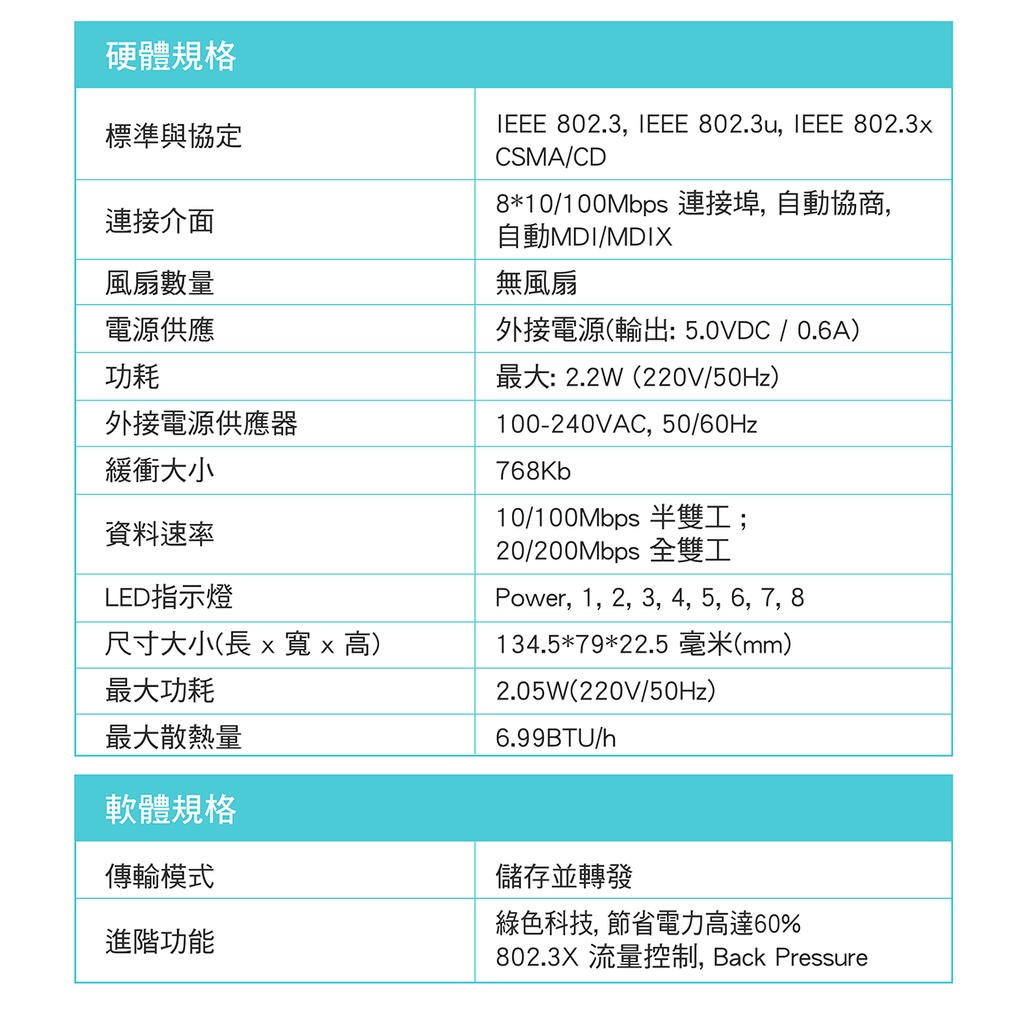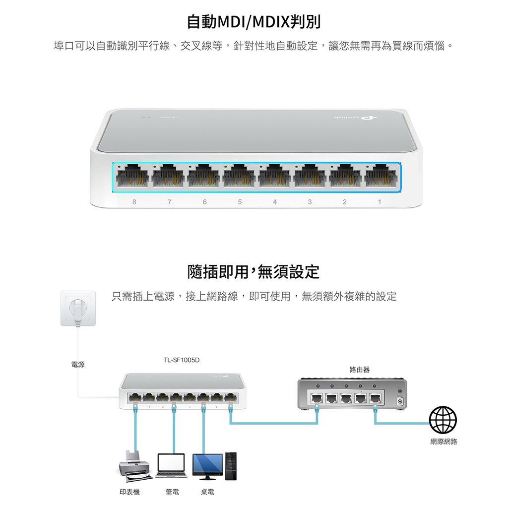 TP-LINK 網路交換器 TL-SF1008D 8 埠 10/100Mbps 桌上型交換器