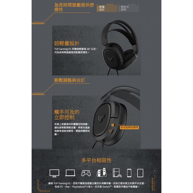 ASUS 華碩 TUF Gaming H1 電競耳機麥克風
