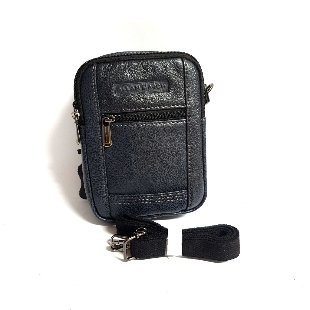 H-CT 深藍牛皮直式可斜背兩用腰包 RR6487-1