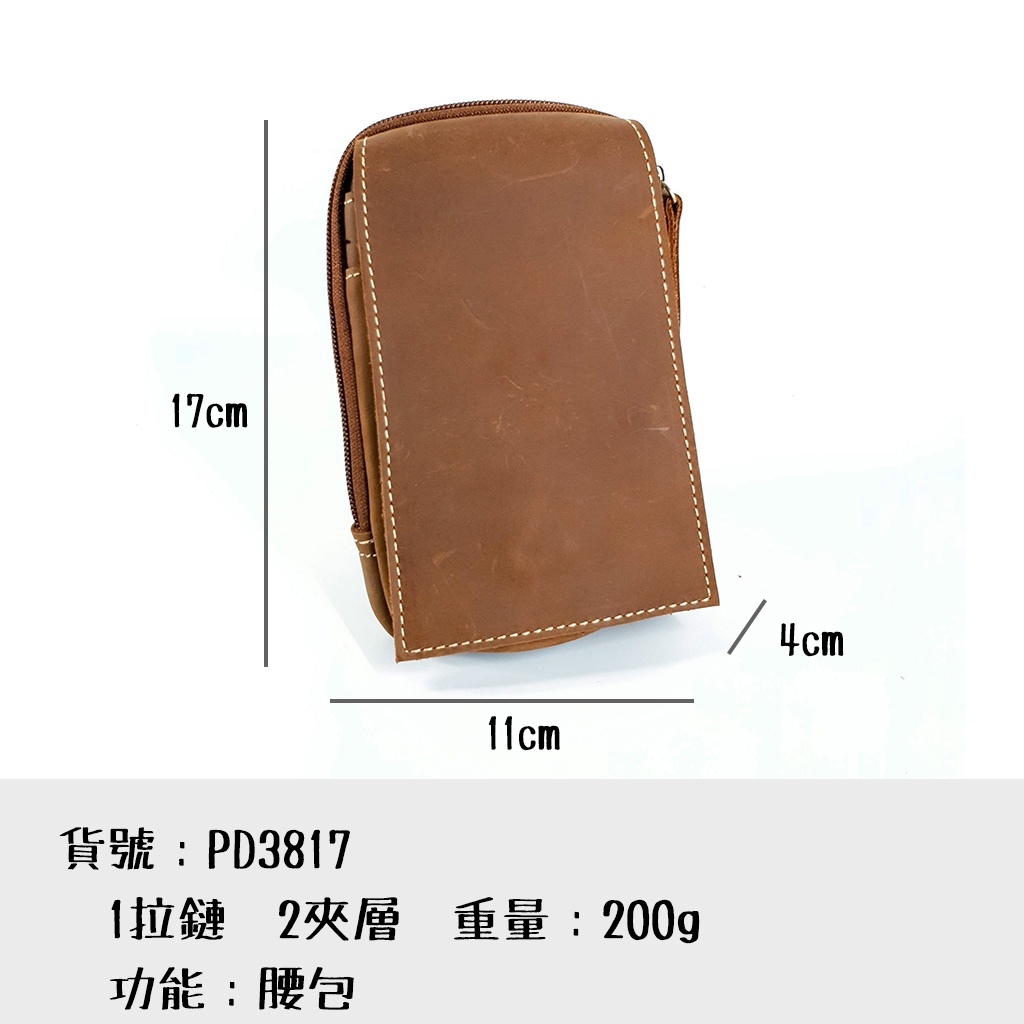 【H-CT】淺卡其色瘋馬皮輕便型小腰包(PD3817)