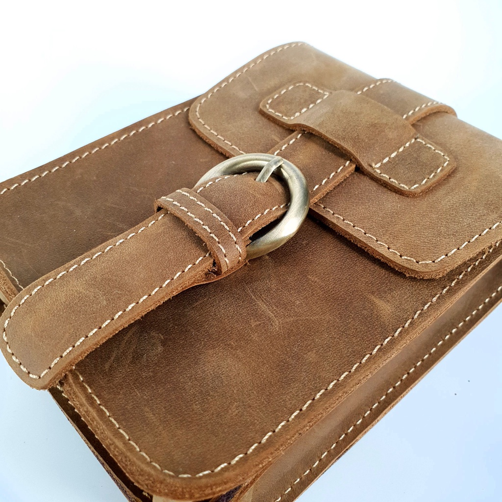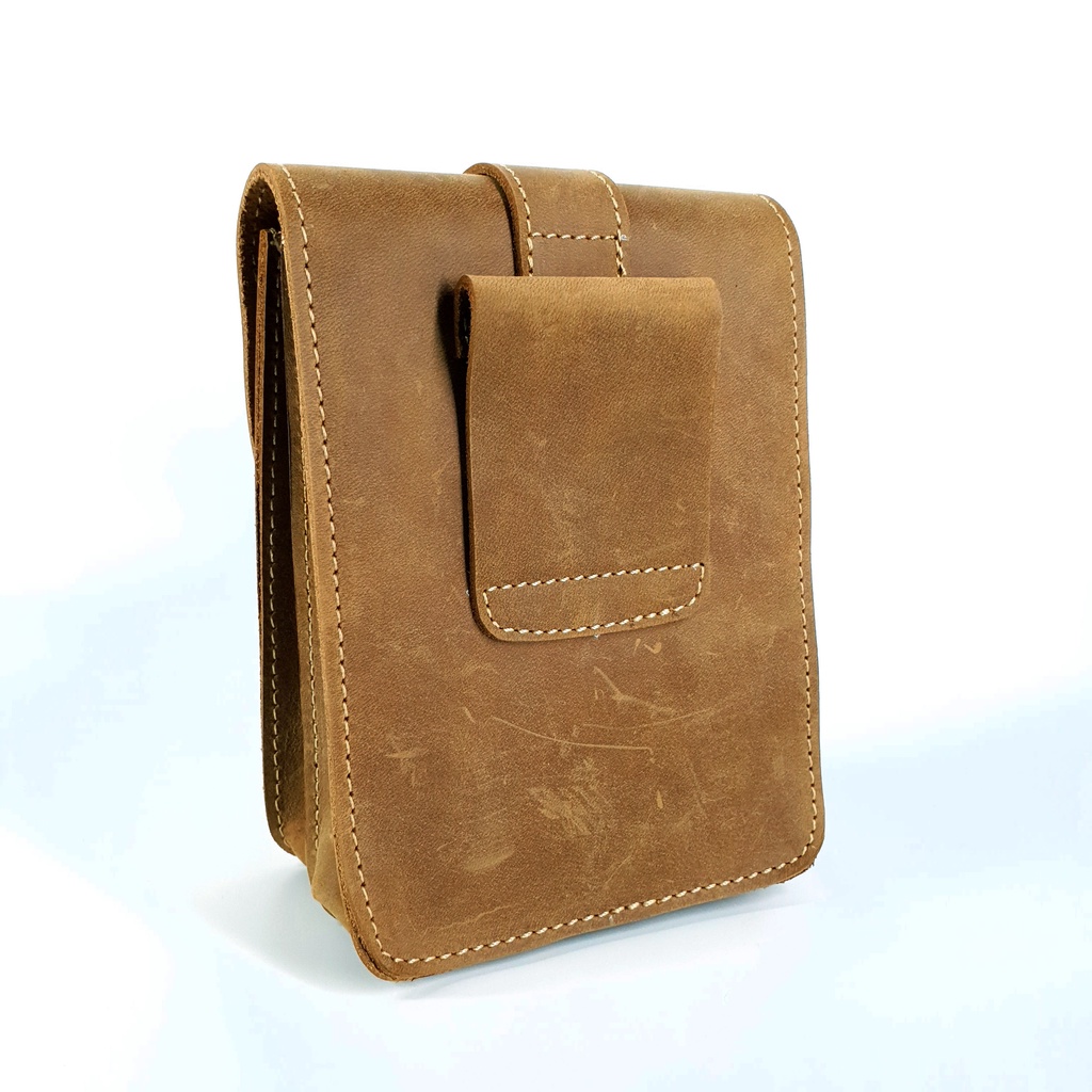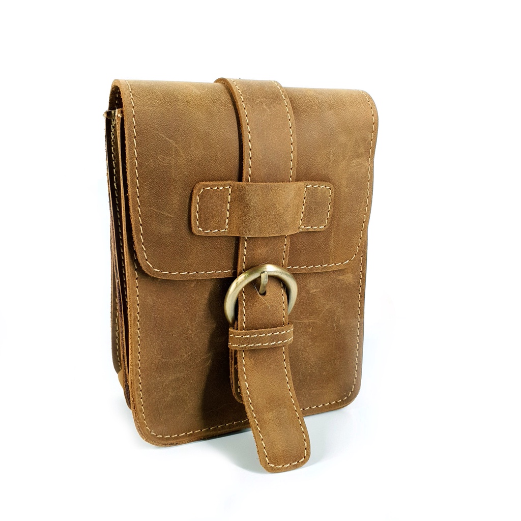 【H-CT】卡其色直式質感瘋馬皮小腰包(PD851)