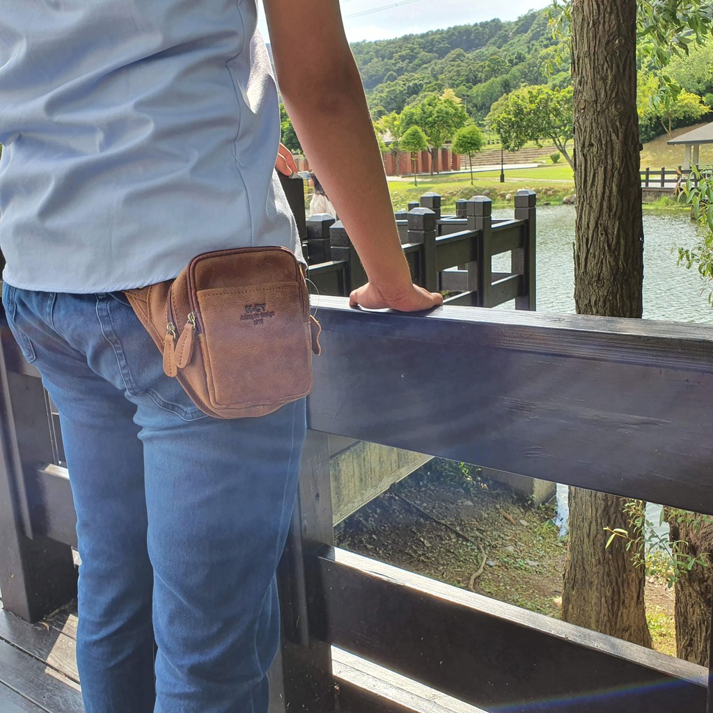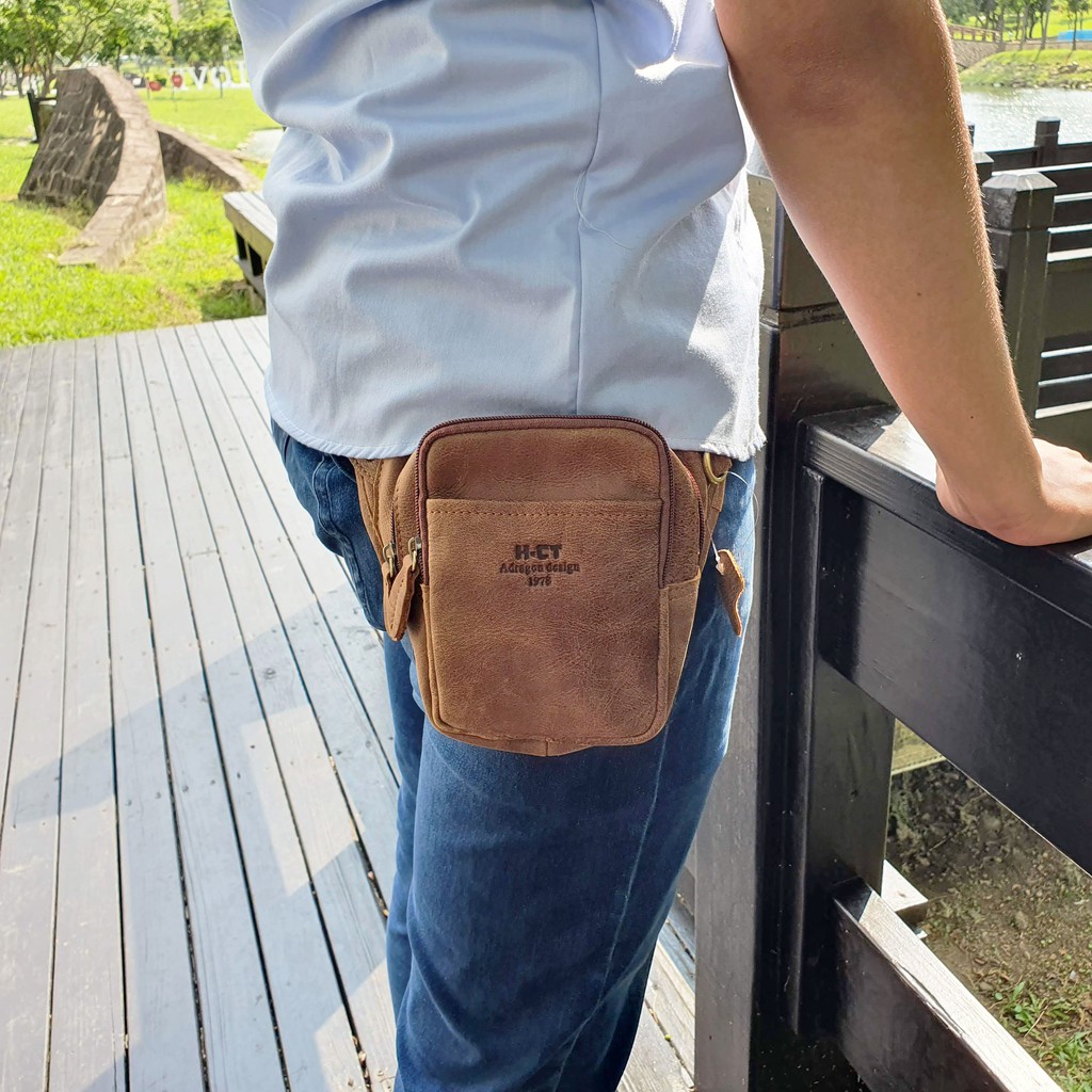 H-CT 真皮 牛皮 腰包 側背包 西部牛仔風 磨砂皮 三角腰包 RJ200