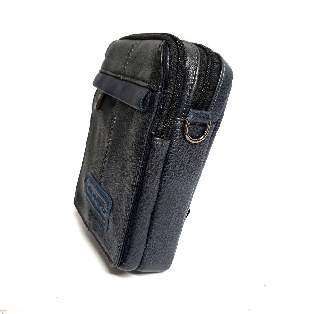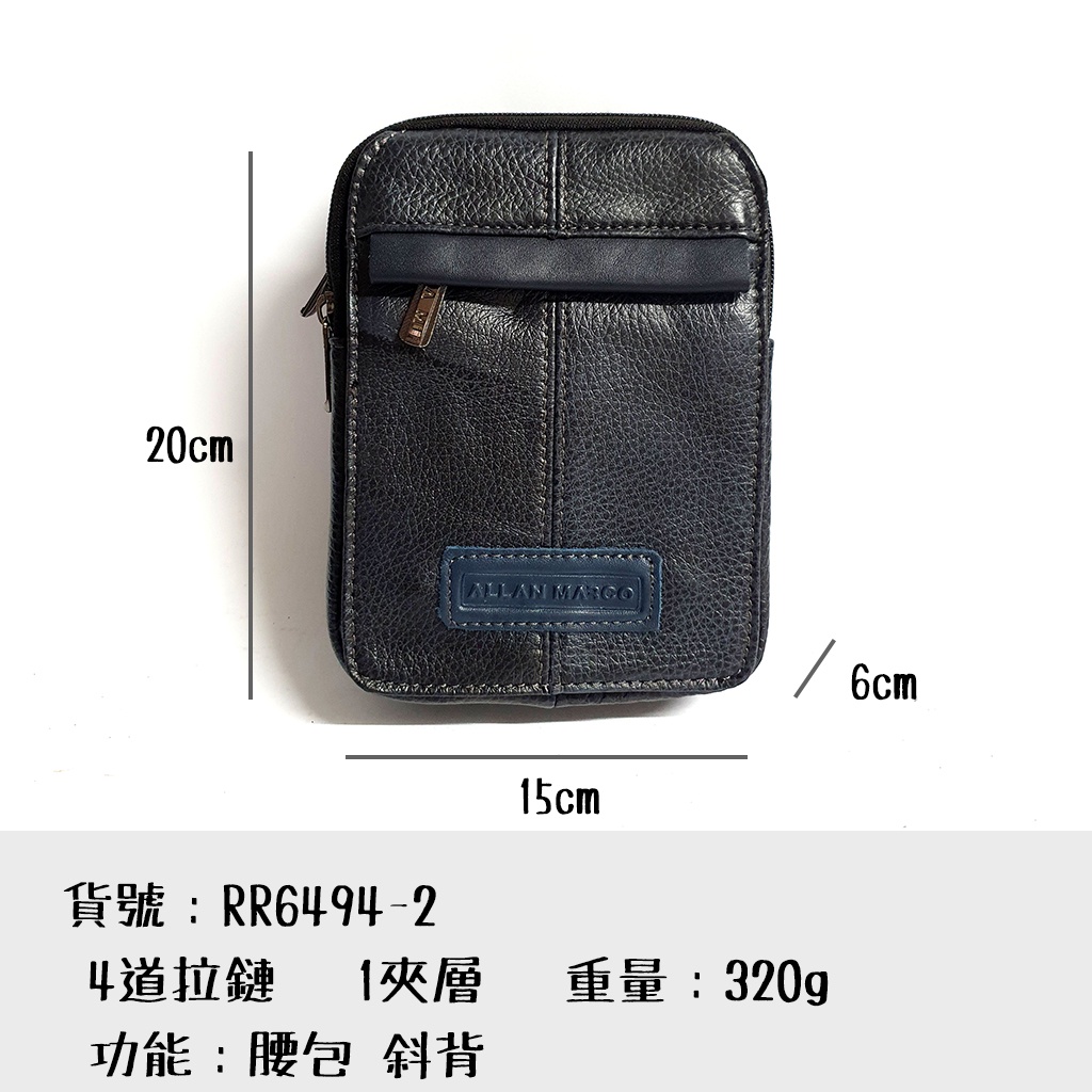 H-CT 真皮 牛皮 腰包 側背包 兩用包 荔枝紋 深藍色 直式小腰包 RR6494-2