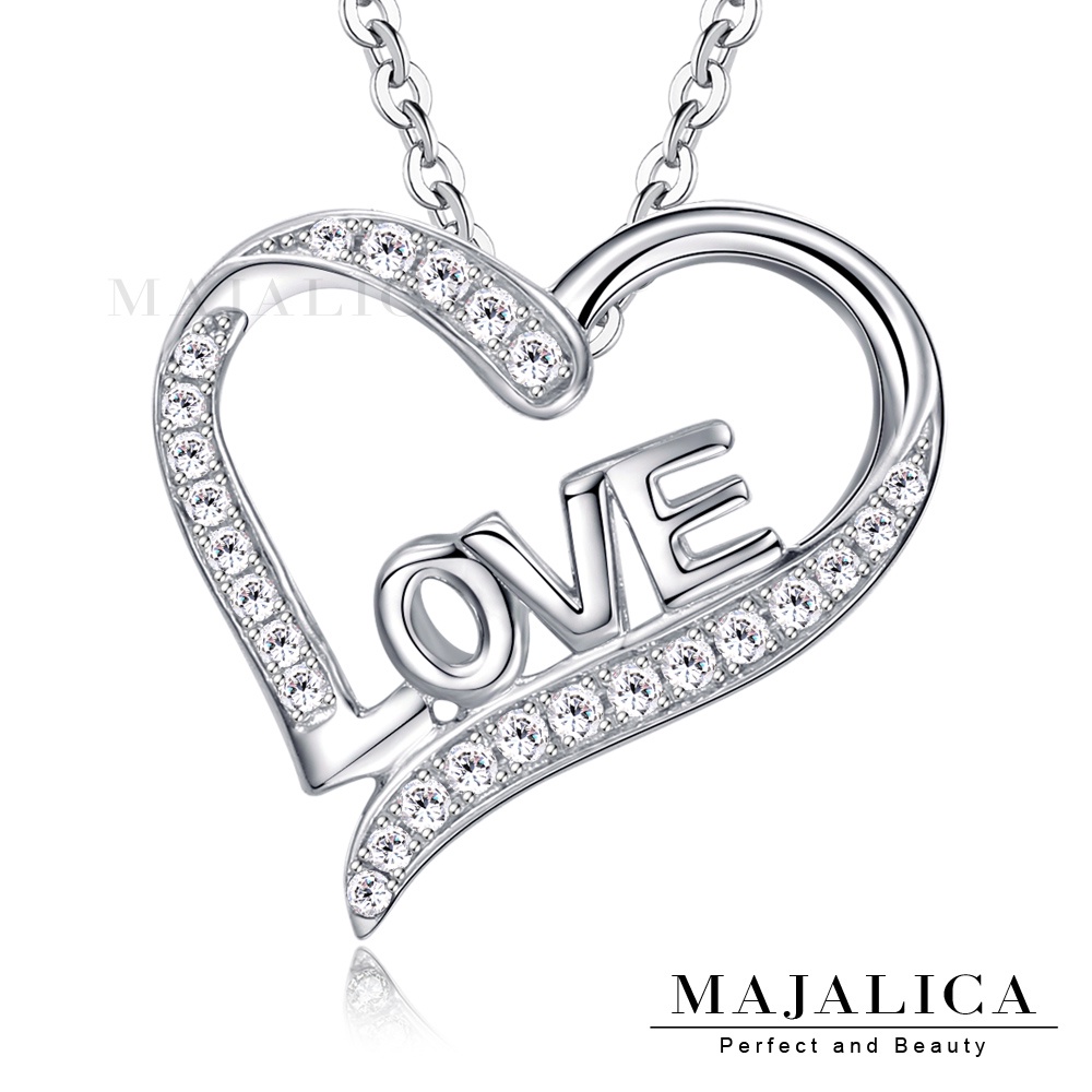 Majalica女鍊S925純銀項鍊女鍊 真愛時刻愛心LOVE字母 PN5060 純銀吊墜鋼項鍊