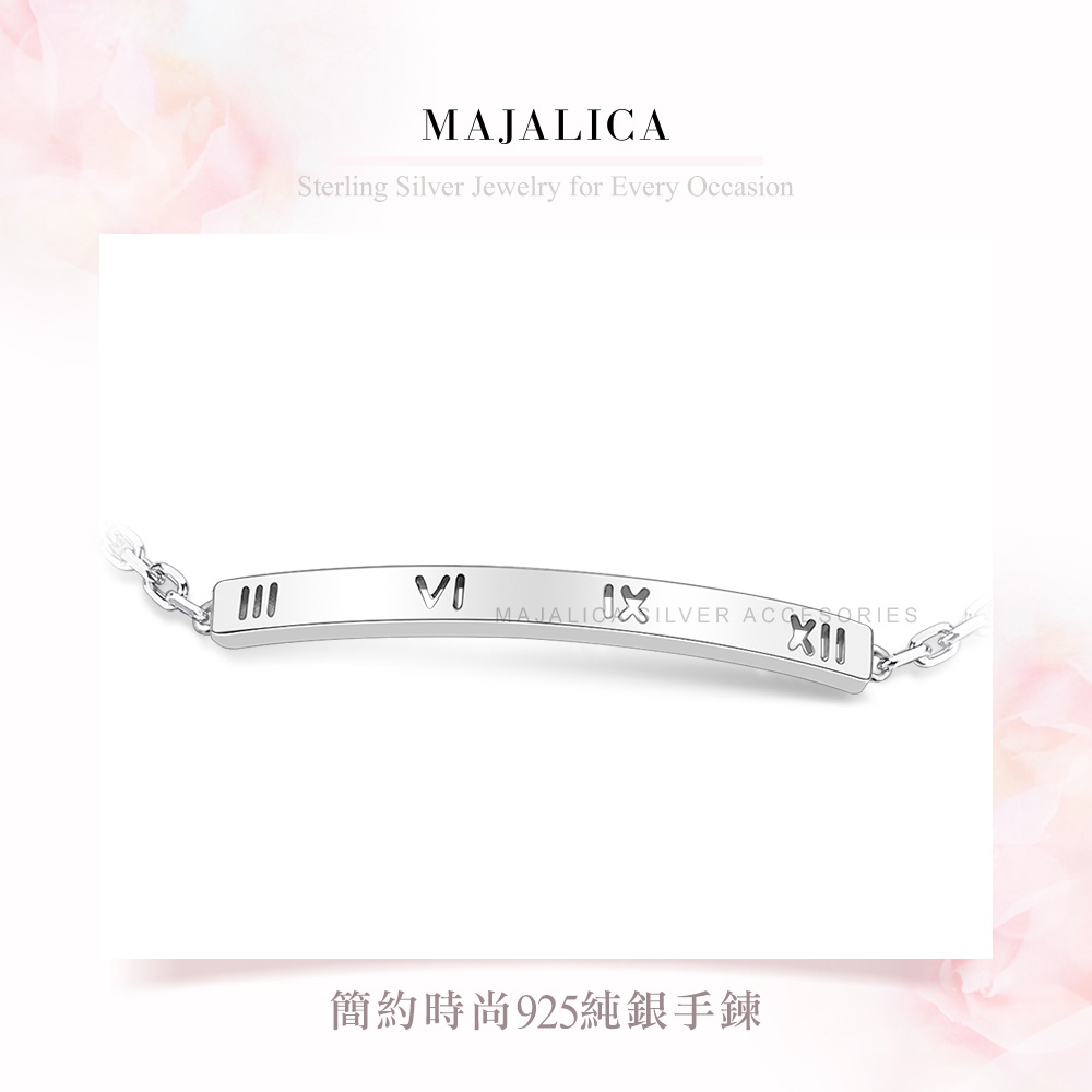 Majalica純銀手鍊S925銀手鏈女羅馬數字時時刻刻PH9012 925純銀手鍊刻字