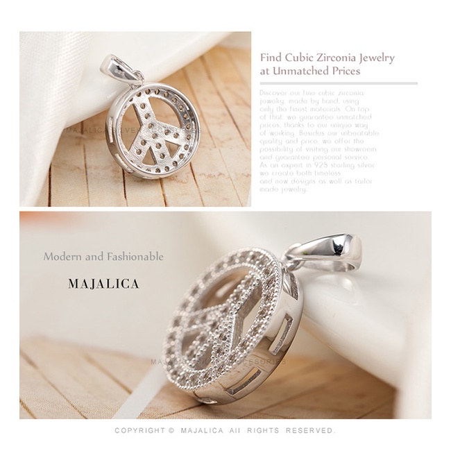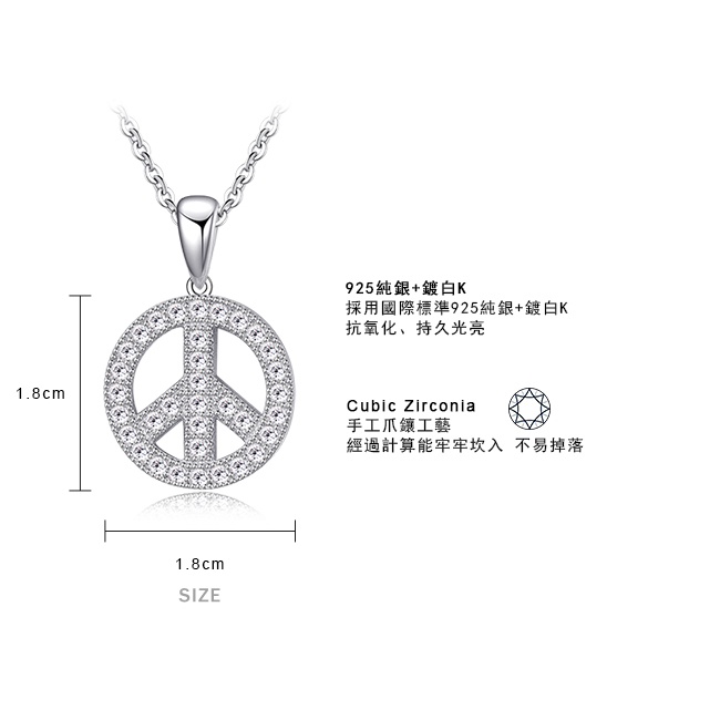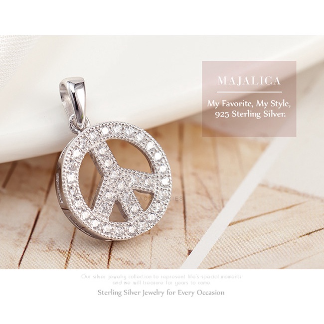 Majalica女鍊S925銀吊飾白鋼短項鍊 世界和平Peace PN5047