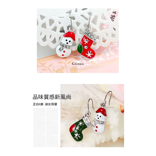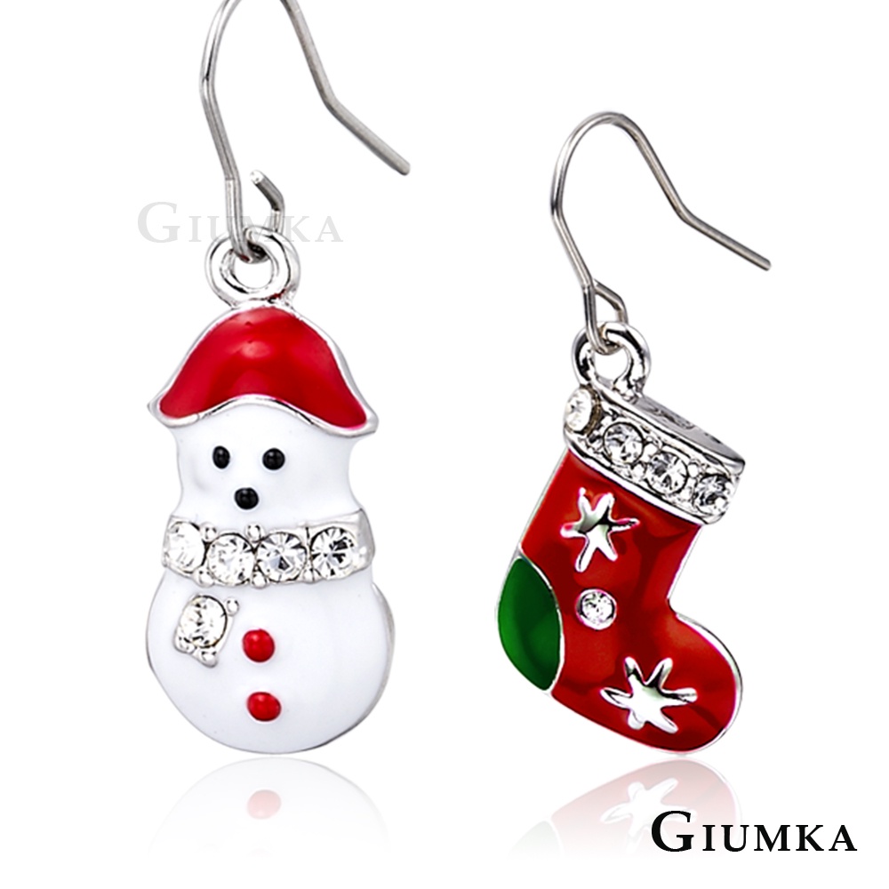 GIUMKA不對稱耳勾耳環 可愛雪人與聖誕襪MF00573 精鍍正白K