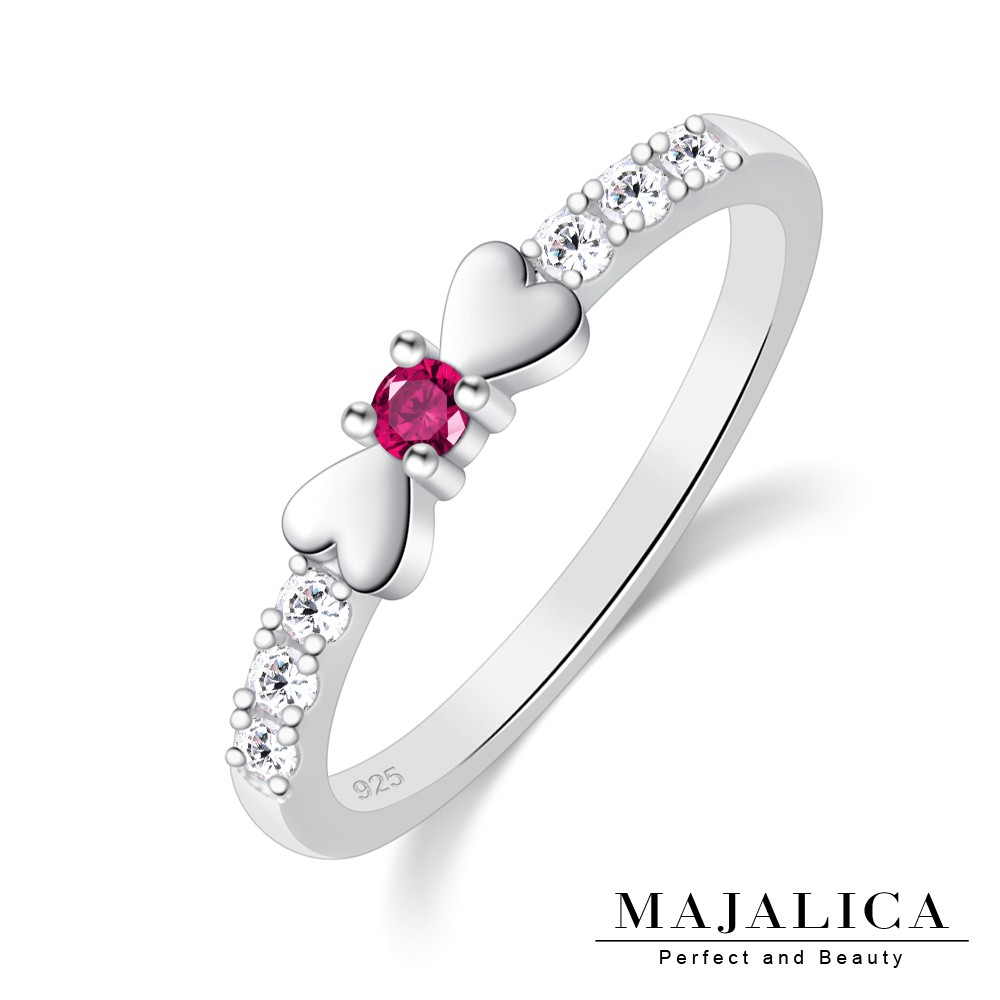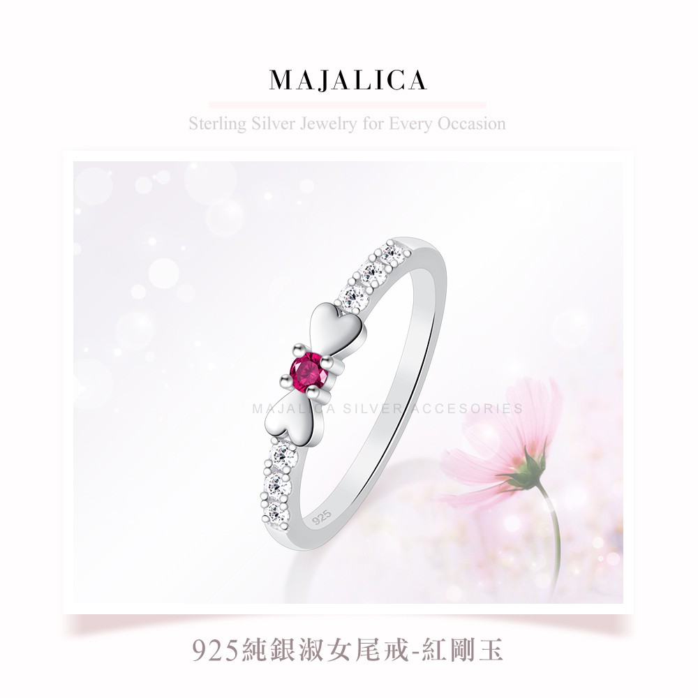 Majalica純銀戒指女戒婚戒尾戒愛心 PR9039蝴蝶結紅剛玉925純銀尾戒 線戒 新春開運防小人