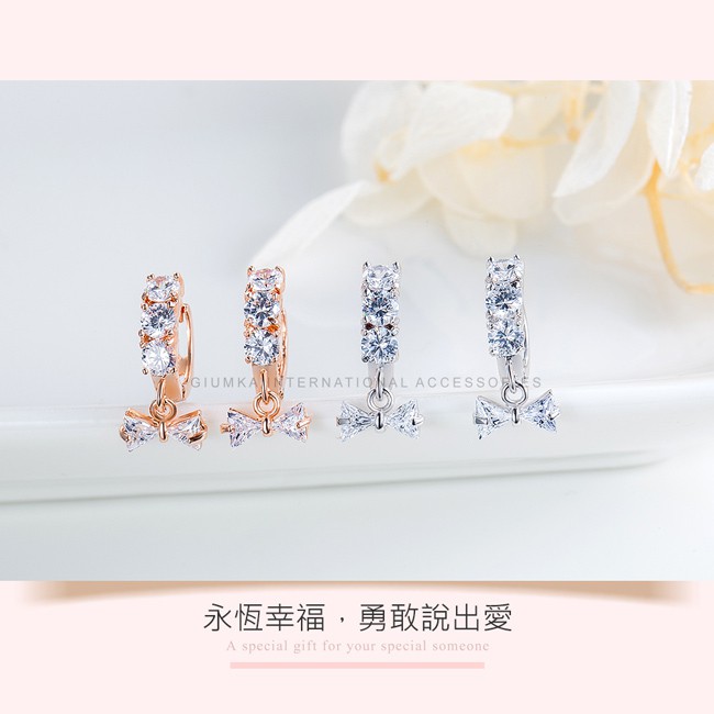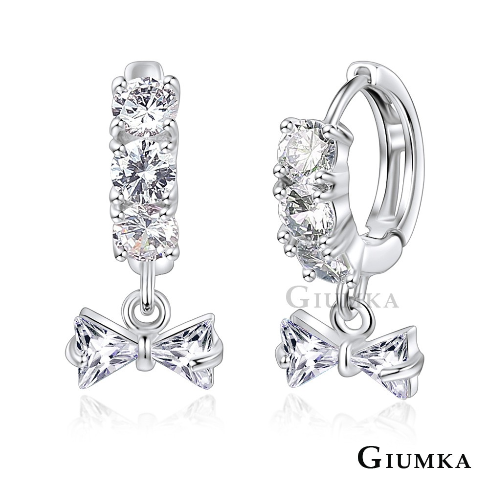 GIUMKA耳圈易扣垂墜女耳環 浪漫蝴蝶結MF07009 精鍍正白K