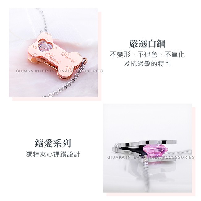 GIUMKA白鋼項鍊女鍊 寵愛MN04107玫金/銀色 鑲愛系列 單個價格