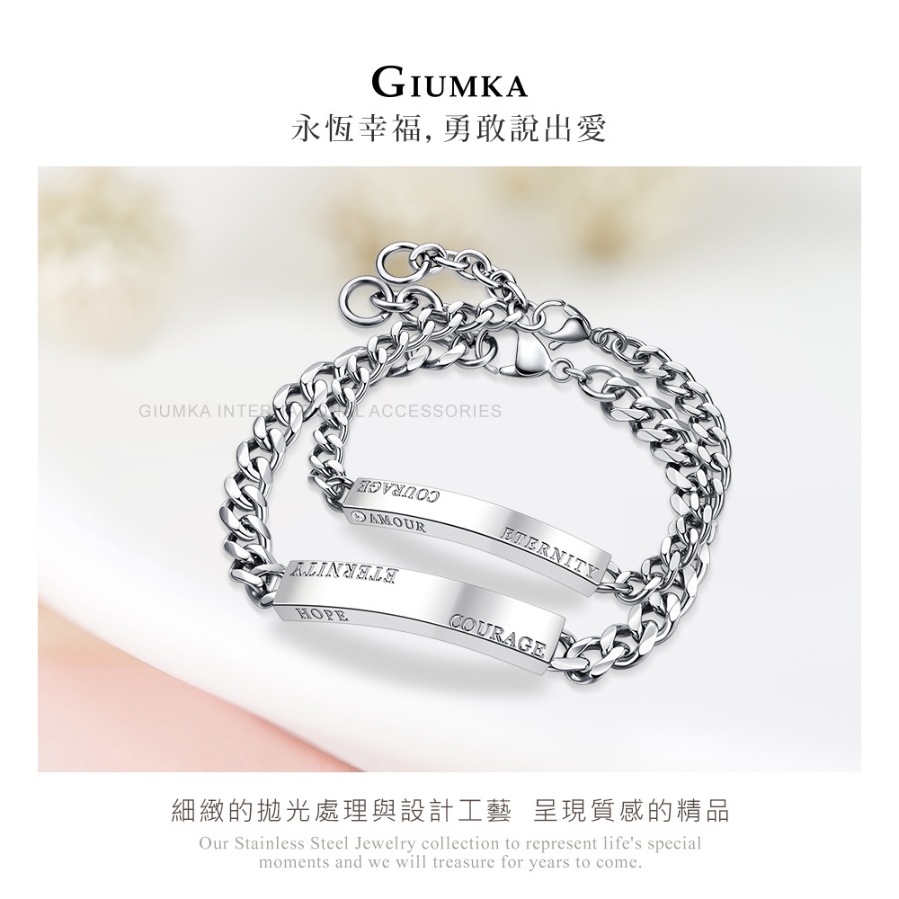GIUMKA情侶手鍊刻字永恆戀情MH20011男女情人白鋼手鏈 單個價格 聖誕節禮物推薦