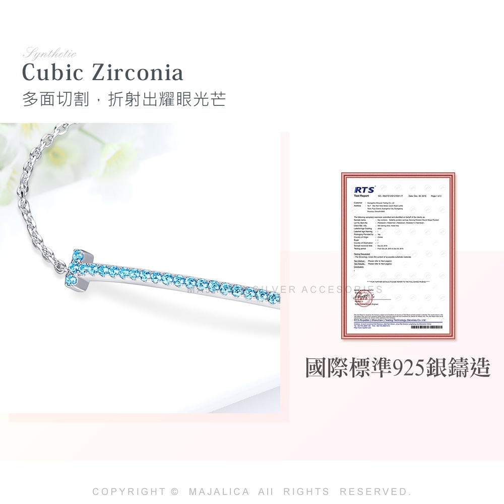 Majalica純銀手鍊3色任選女手鏈 一字簡約造型S925銀手鍊PH8029滿鑽 單個價格
