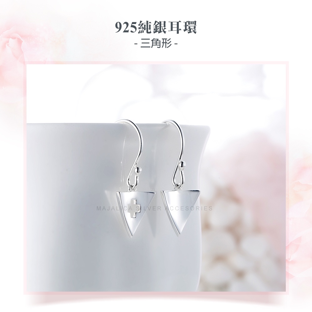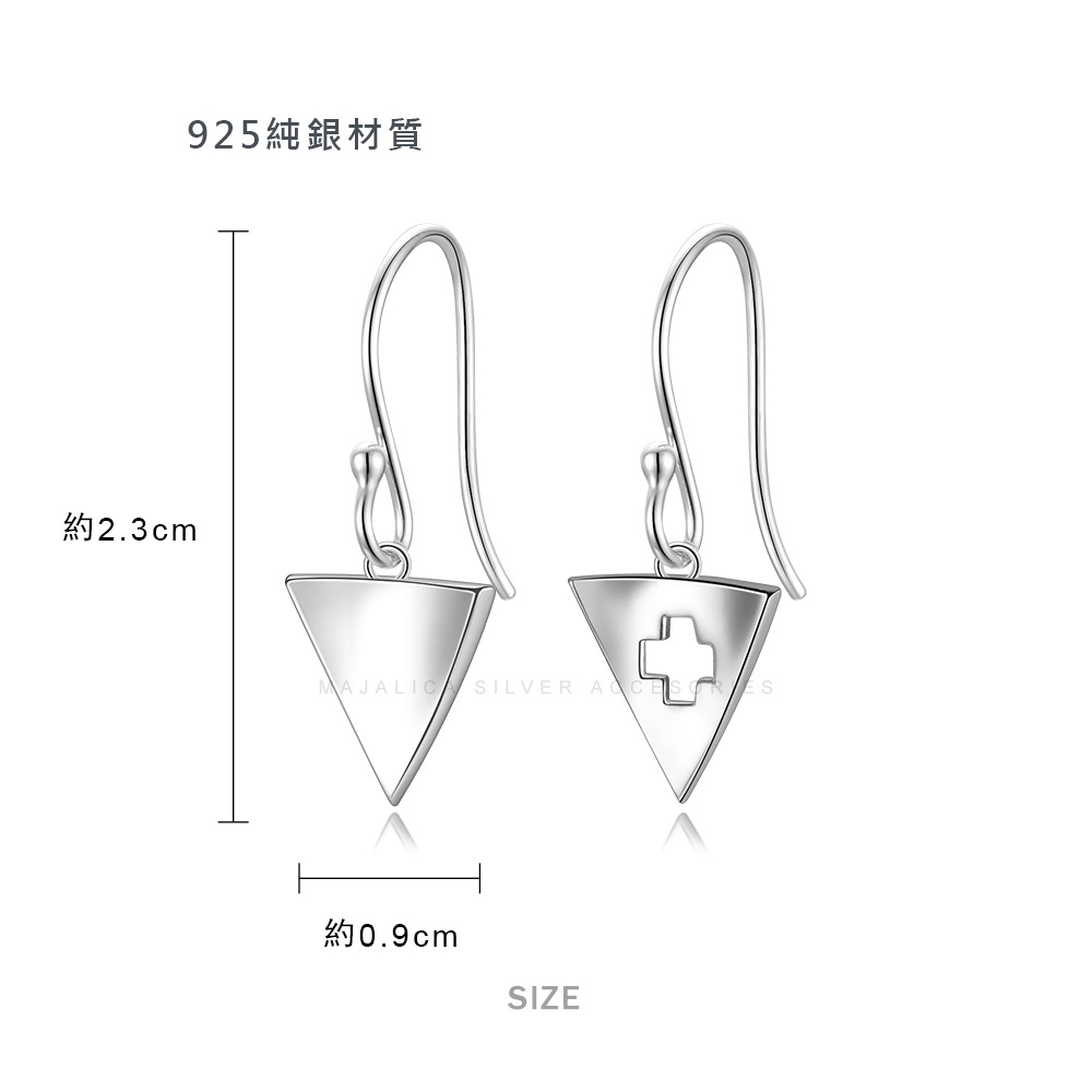 Majalica不對稱耳環刻字S925純銀耳環 簡約三角PF8084耳勾式925純銀 淑女耳飾