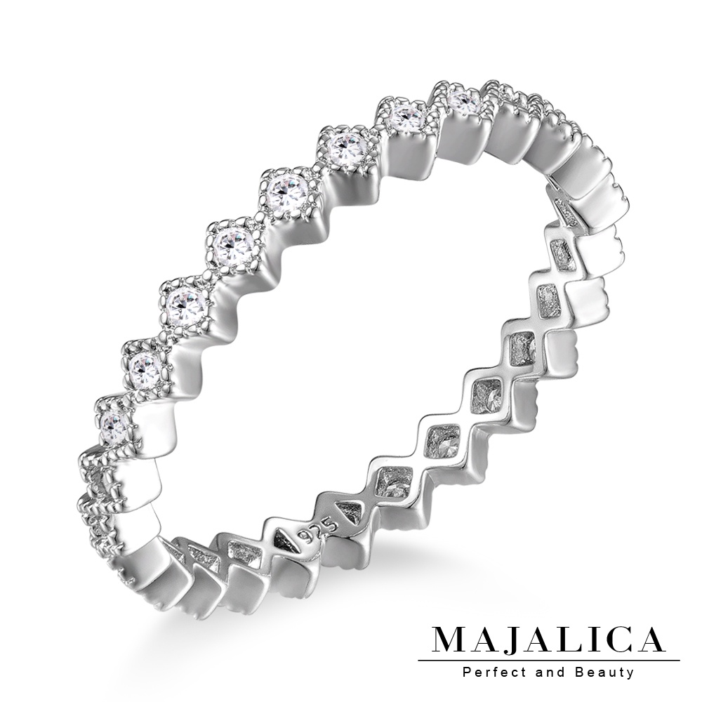 MAJALICA女戒純銀戒指S925銀尾戒子菱形PR6044精鍍白金/玫瑰金/黃K金 單個價格