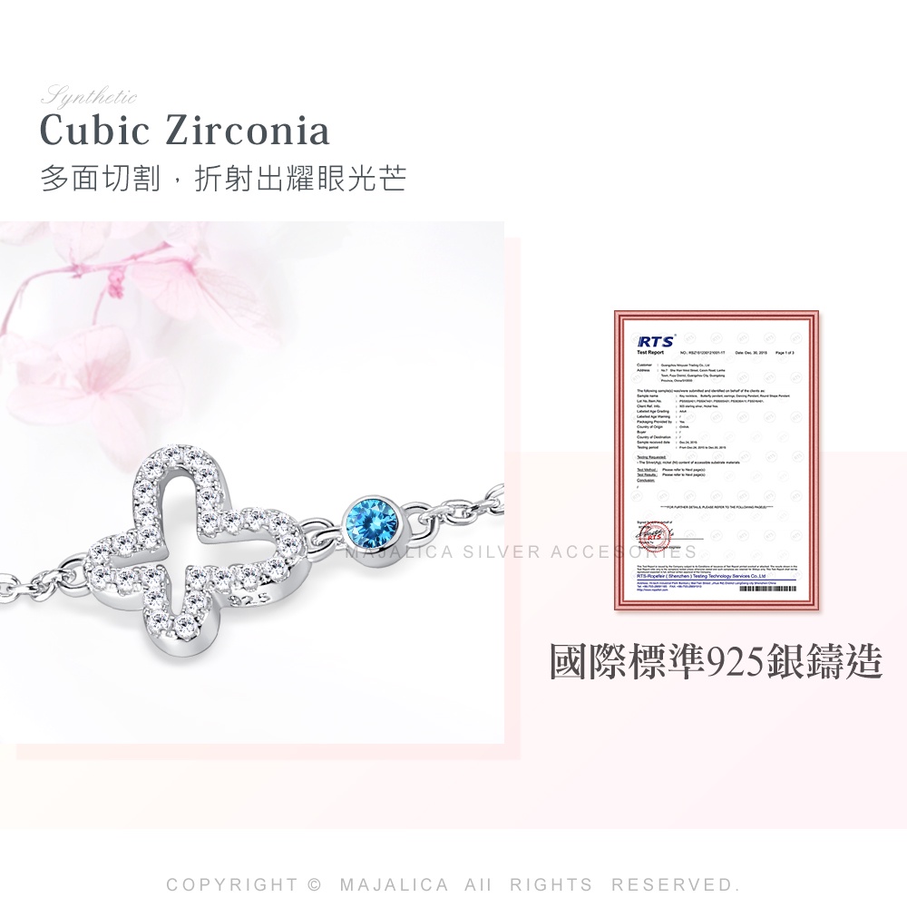 Majalica女手鏈S925銀手鍊蝴蝶元素刻字紀念PH8042單個價格