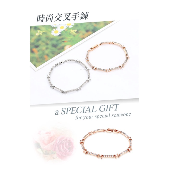 GIUMKA手鏈女手飾時尚交叉手鍊MH06018 精鍍正白K 銀色/玫金色 單個價格