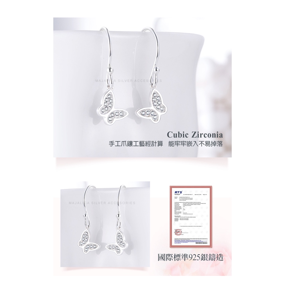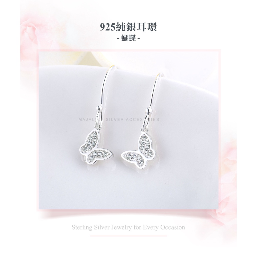 Majalica女耳飾S925純銀耳環 蝴蝶共舞PF8062耳勾式 925純銀 淑女純銀耳環