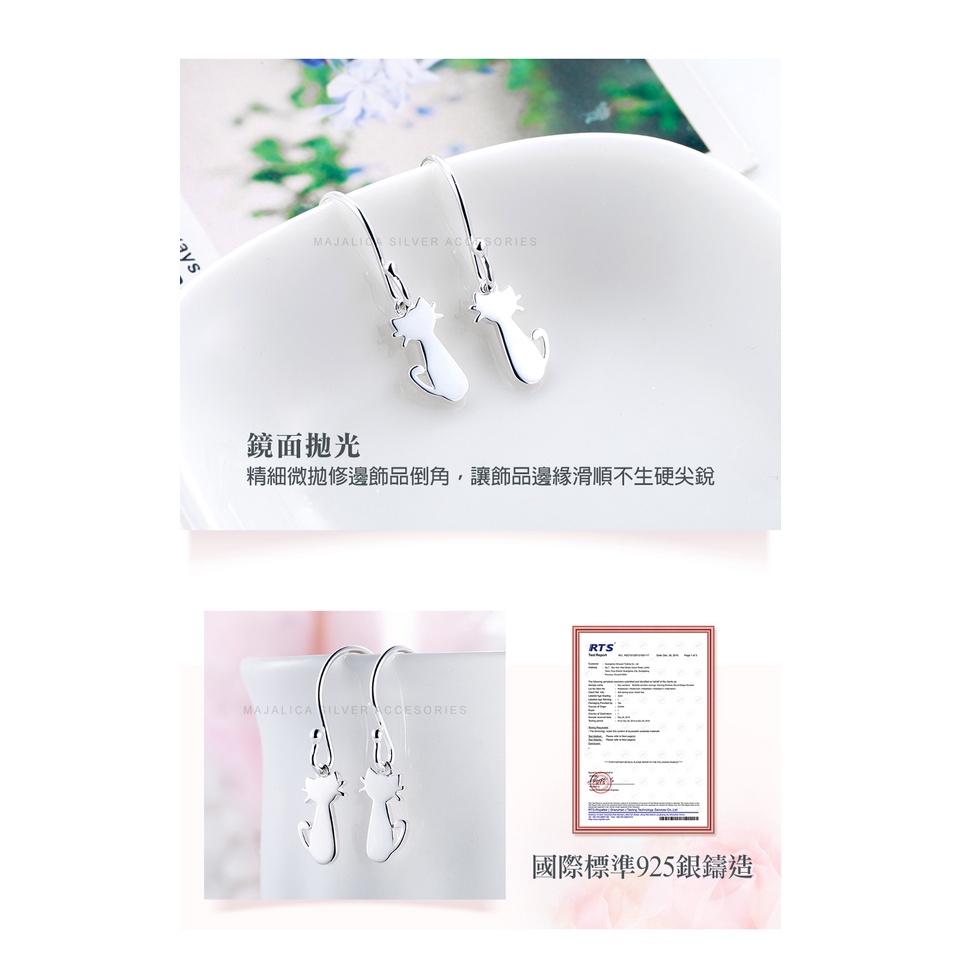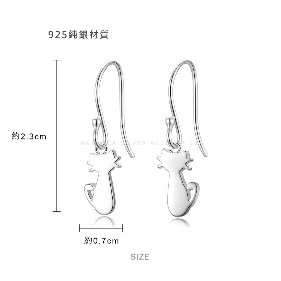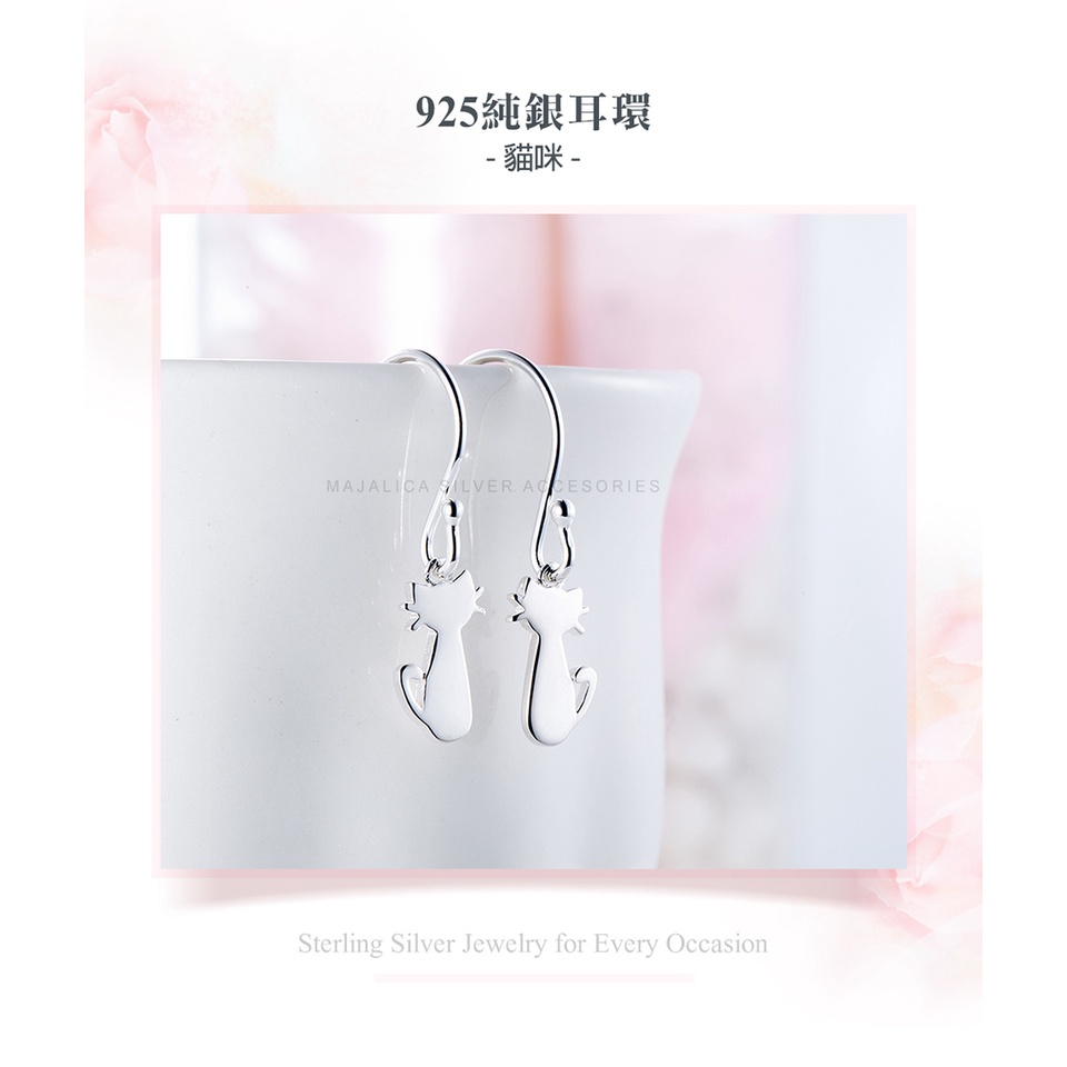Majalica耳環刻字S925純銀耳環 俏貓咪PF8082耳勾式動物 925純銀 淑女純銀耳飾