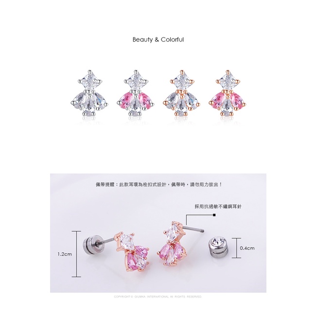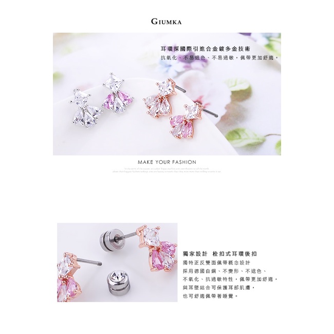 GIUMKA白K飾-耳環華麗宮廷服 栓扣式耳環MF04129精鍍正白K 銀色/玫金
