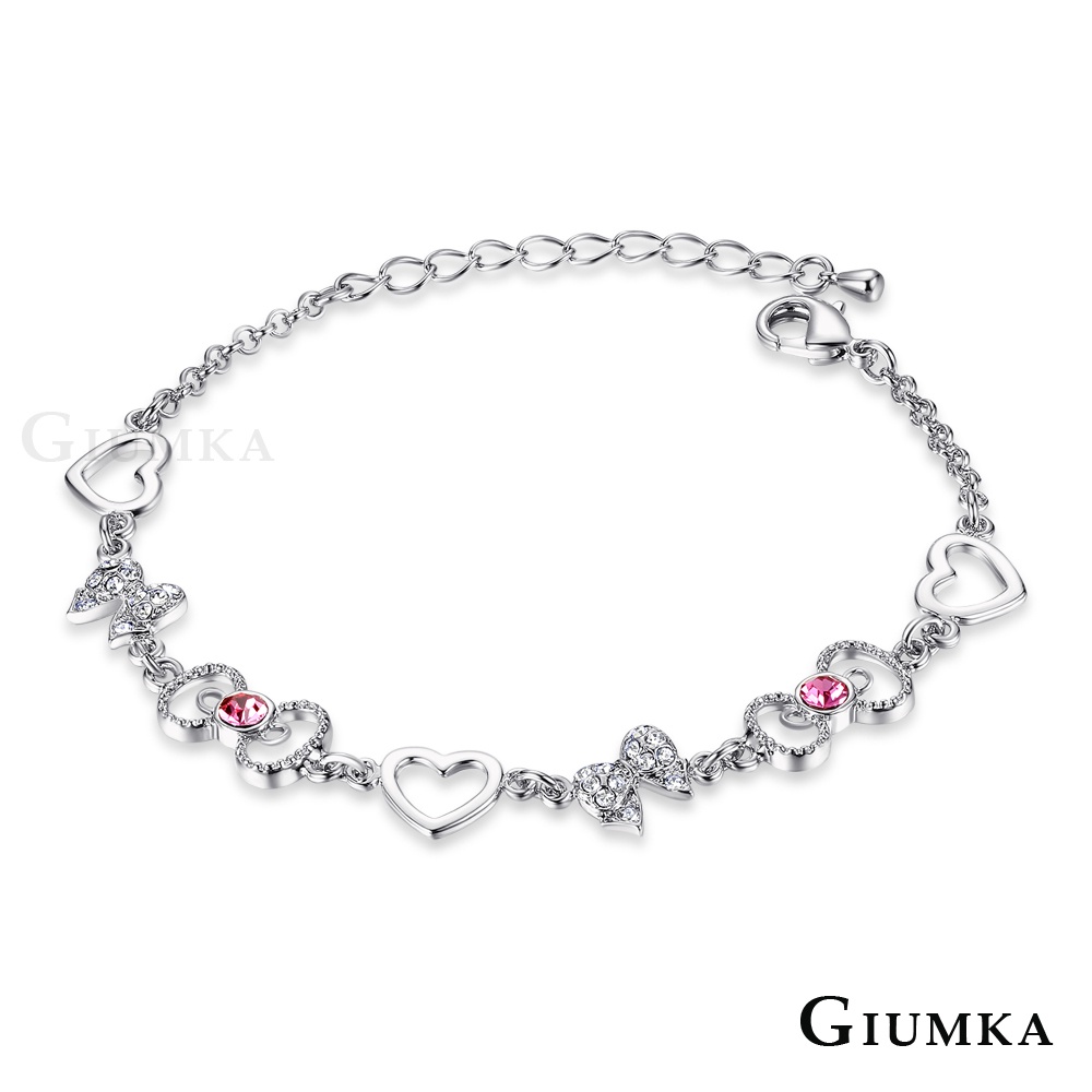 GIUMKA手鍊女手飾夢幻世界手鍊MH06010精鍍正白K 愛心 銀色/玫金色 單個價格