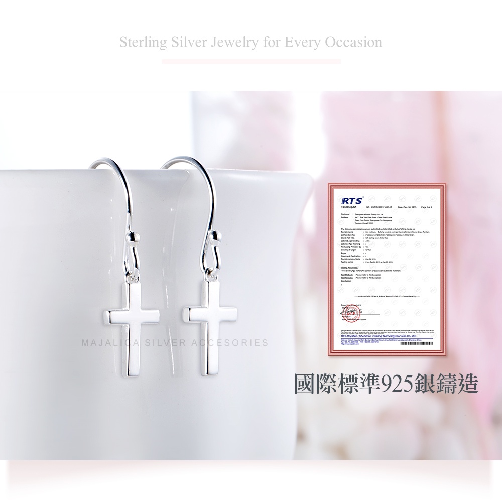 Majalica女耳環S925純銀耳環女 極簡十字架PF8072耳鉤式耳飾