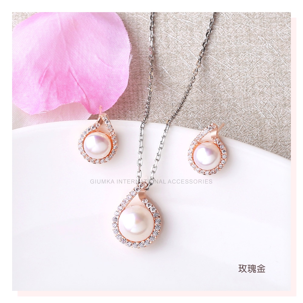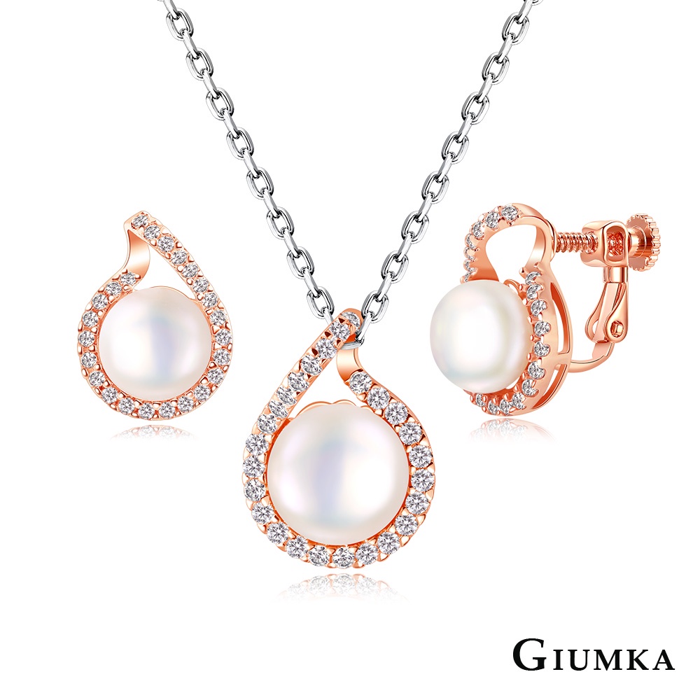 GIUMKA.項鍊耳環套組.天然珍珠 9.5~10.0 MM.人魚的眼淚.MN22001
