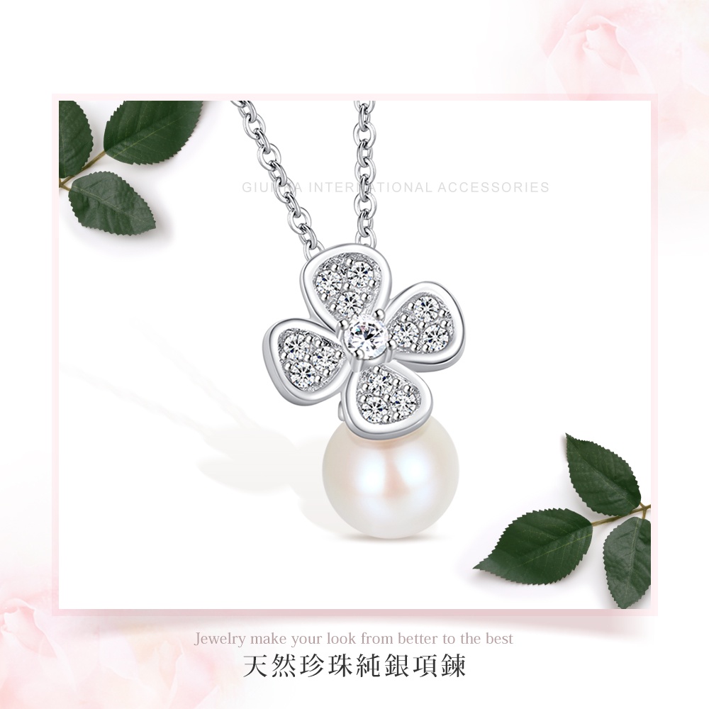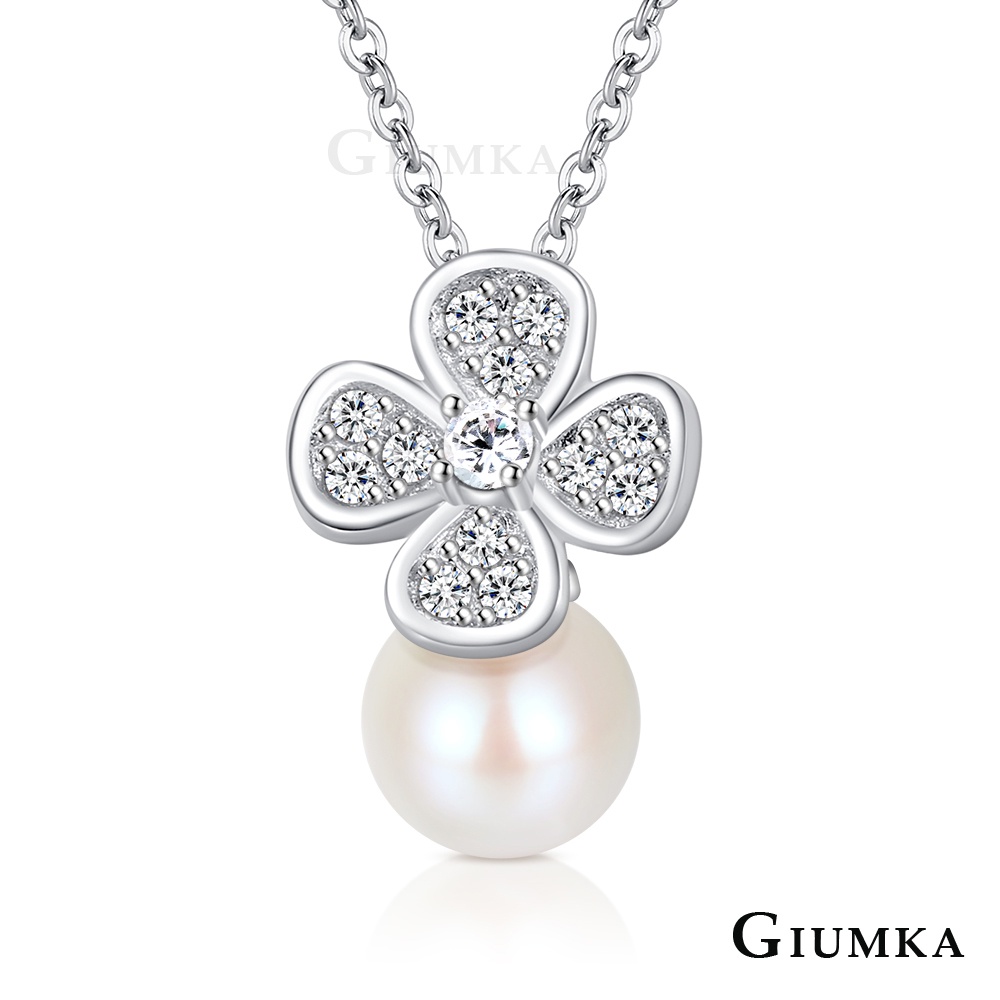 GIUMKA.925純銀項鍊.天然珍珠.四葉草.客製刻字