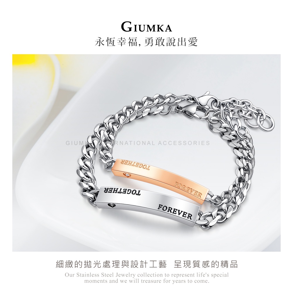 GIUMKA聖誕禮物情侶手鍊刻字紀念白鋼手鏈 永恆相伴MH20022男女情人手鍊 情人節禮物 單個價格