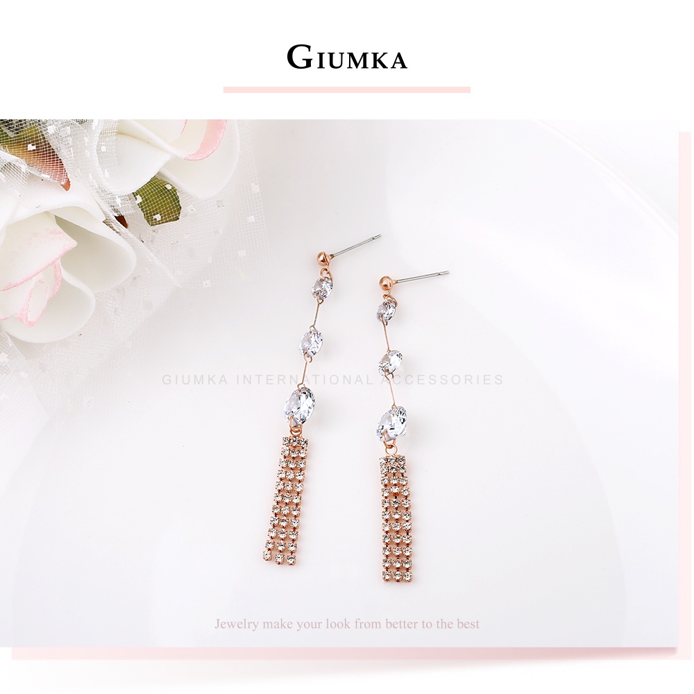 GIUMKA 女款耳環 搖曳生姿滿鋯 耳針式 垂墜 耳針式耳環 精鍍正白K/玫瑰金 一對價 MF20081