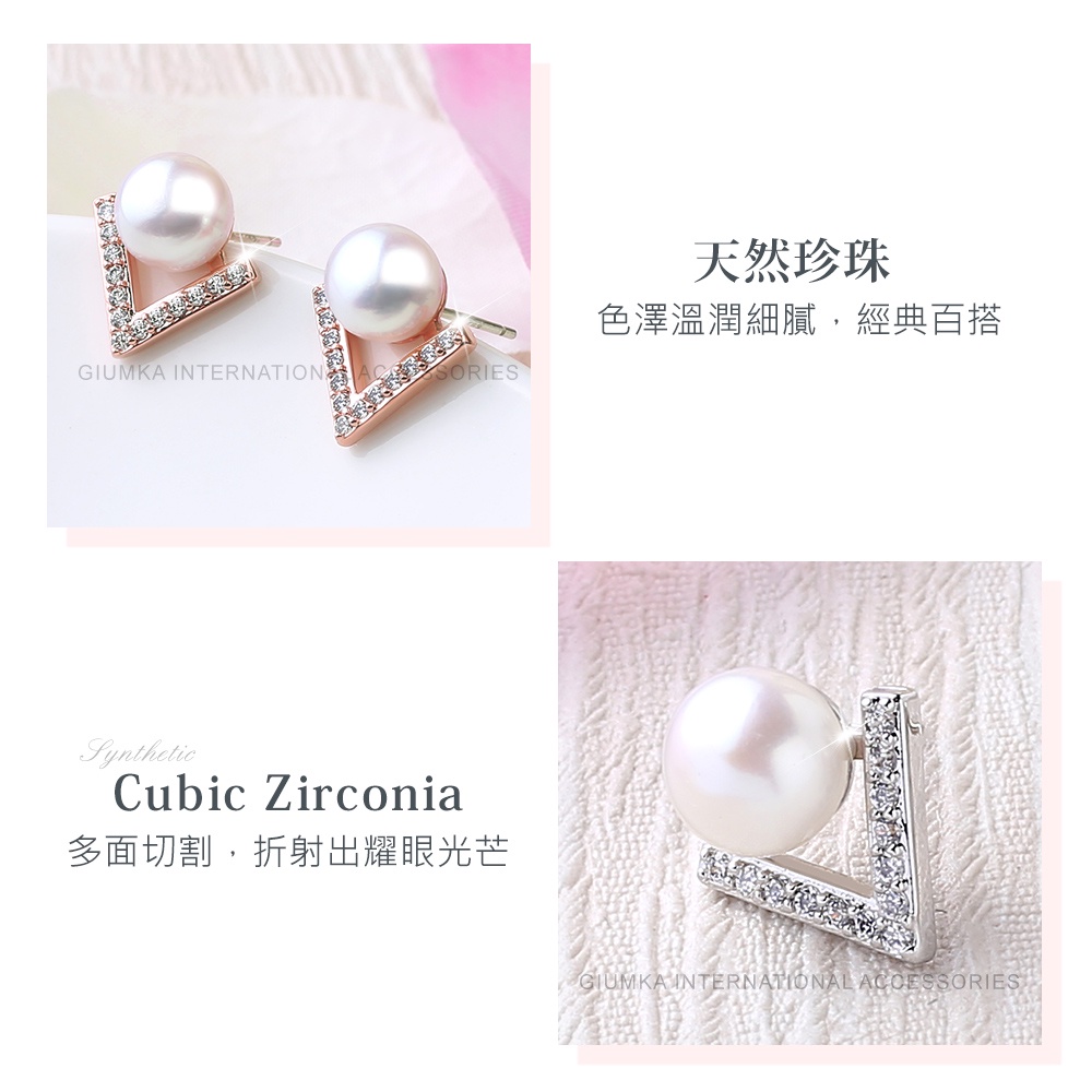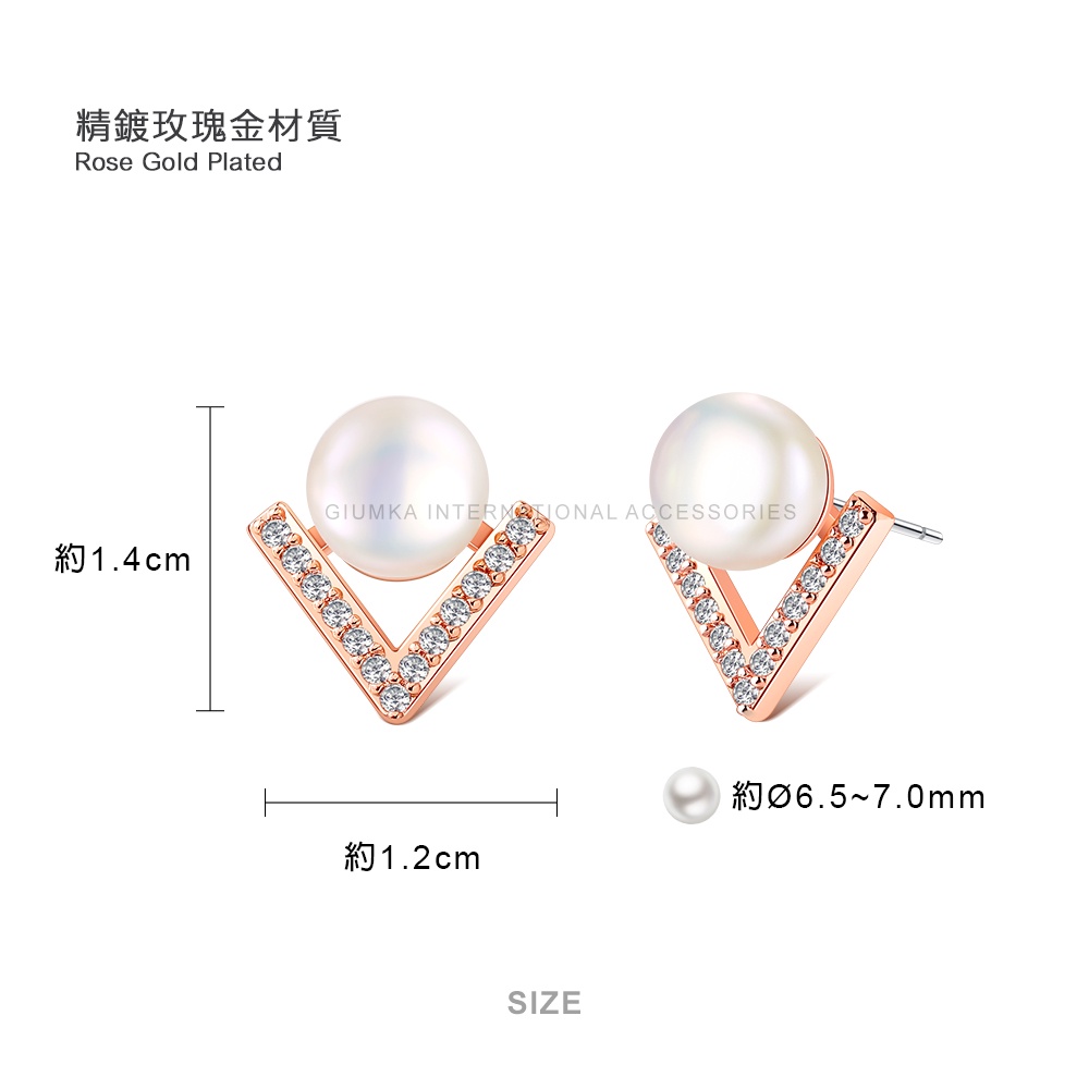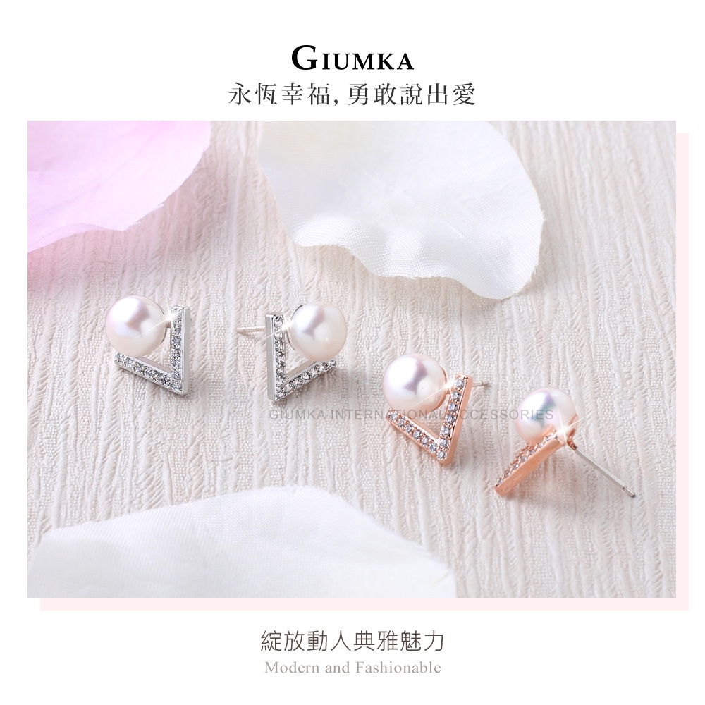 GIUMKA.天然珍珠耳環.6.5-7.0 mm.V字.精鍍正白K.耳針式.耳夾式.銀色款.MF21020