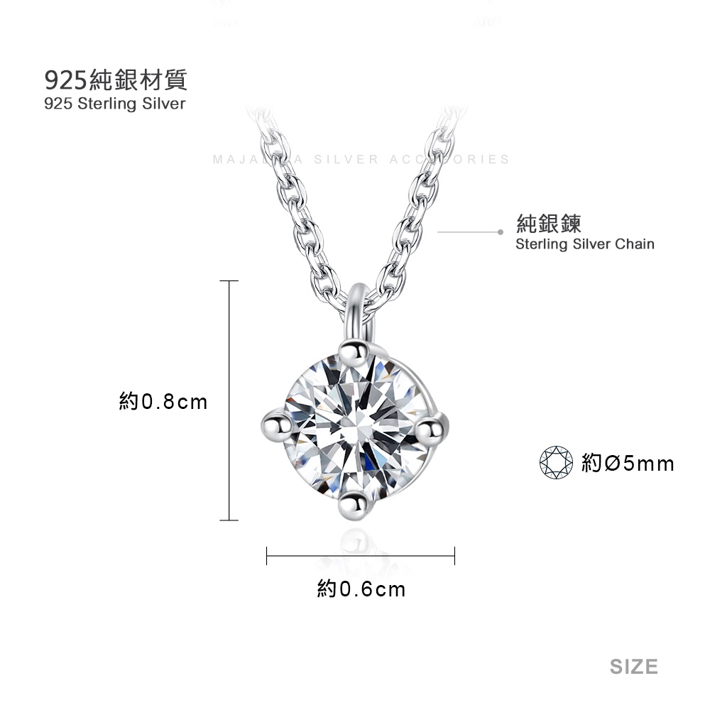 Majalica.單鑽項鍊女.925純銀墜鏈.獨愛.可刻字