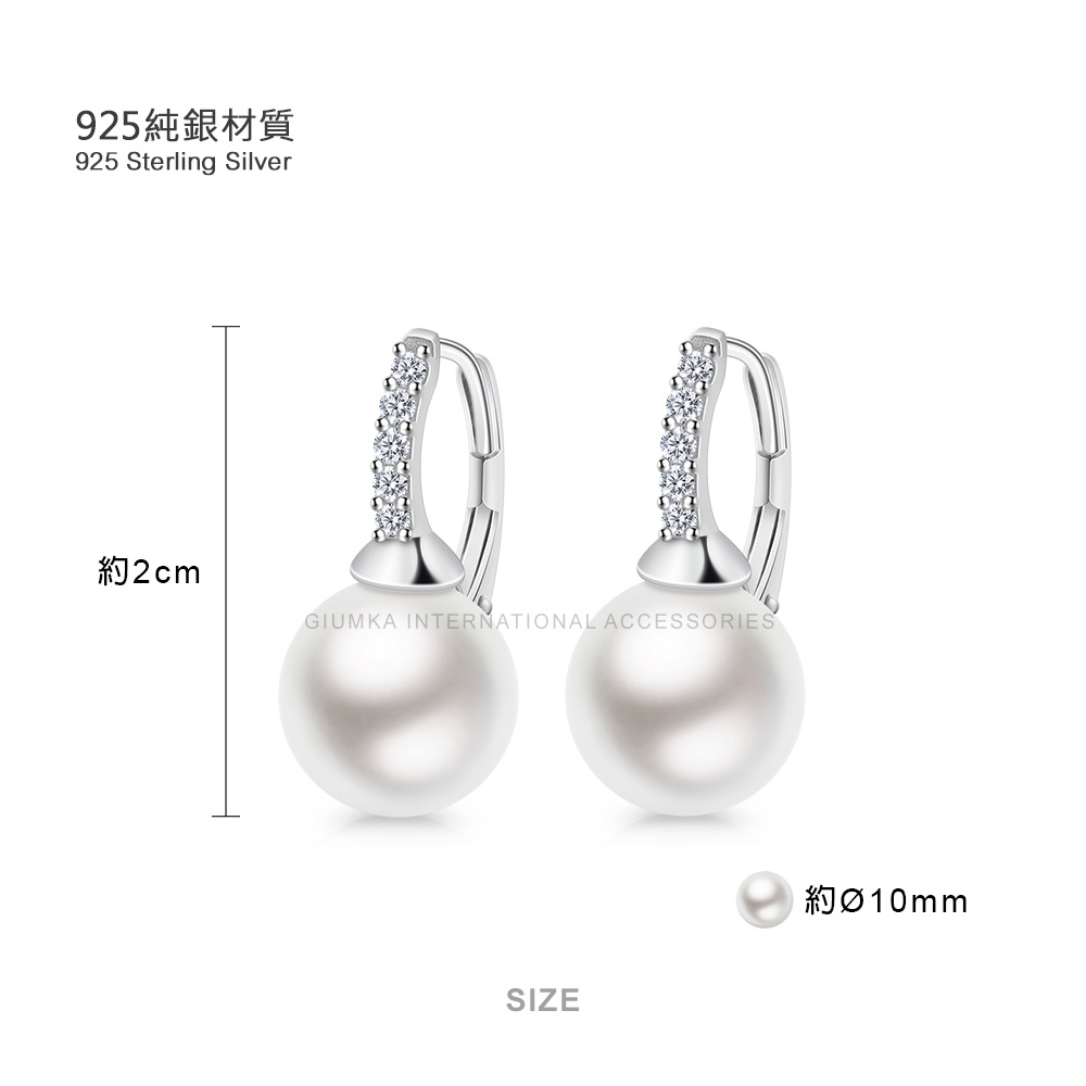 GIUMKA 925純銀珍珠耳環 10.0 mm 易扣耳環 聖誕節 母親節 禮物推薦MFS20015