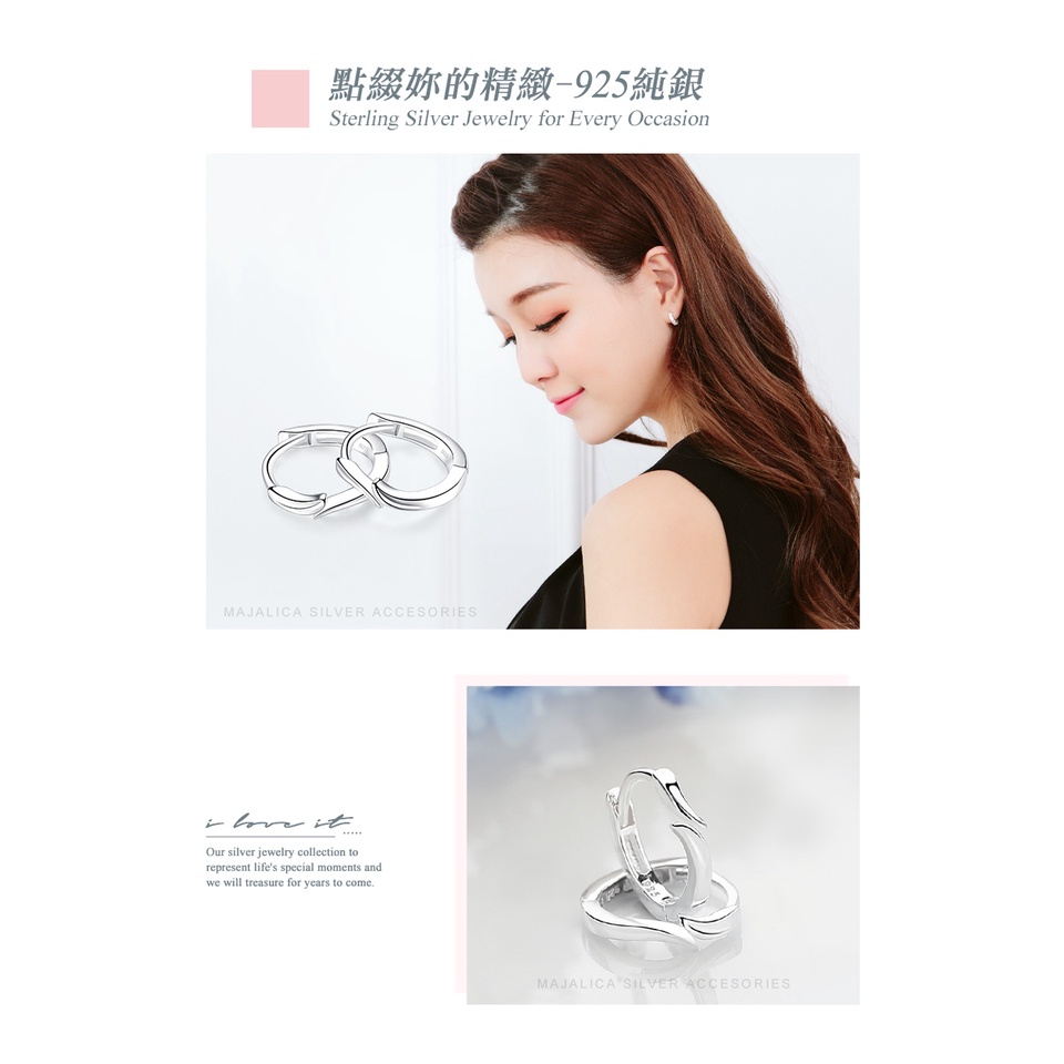 Majalica 925純銀耳環 耳圈耳飾 易扣式純銀耳環 多款任選 一對價格 PF7110-PF7115