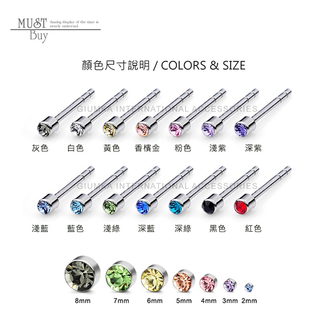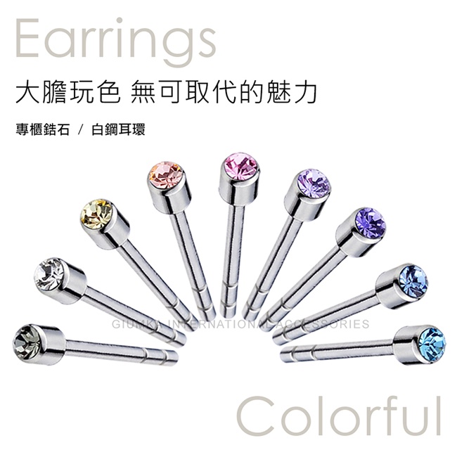 GIUMKA簡約單鑽耳環 白鋼耳釘 不易過敏 3MM 一對價格 多色任選 MF00479
