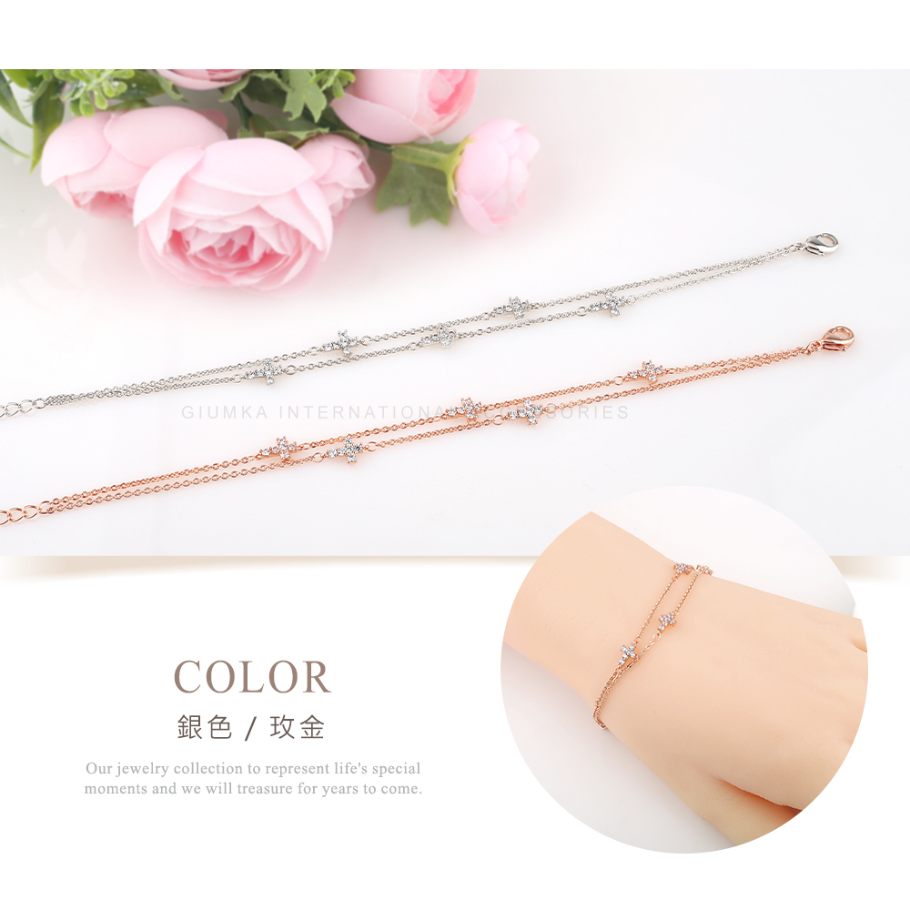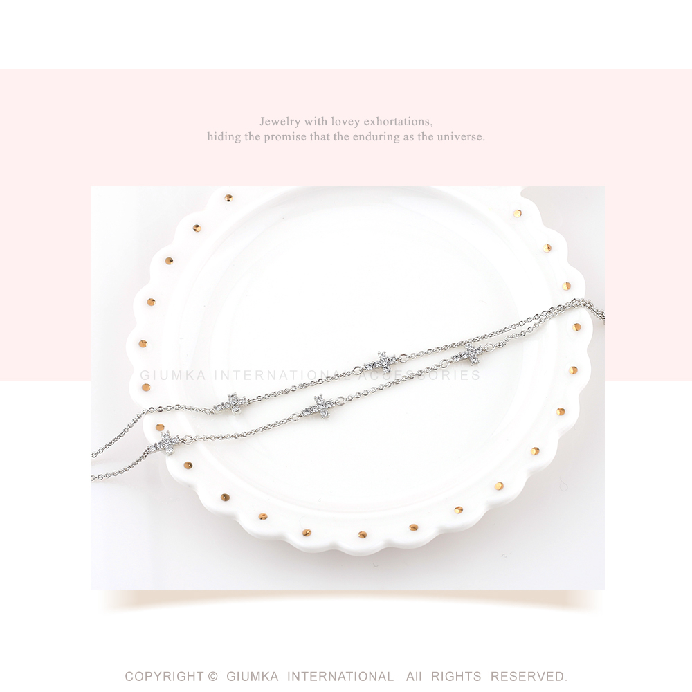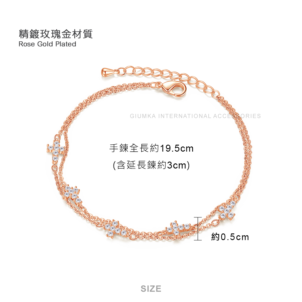 GIUMKA十字架雙層手鏈 美好的祝福手鍊 精鍍正白K/玫瑰金 兩色任選 單個價格 MH22002